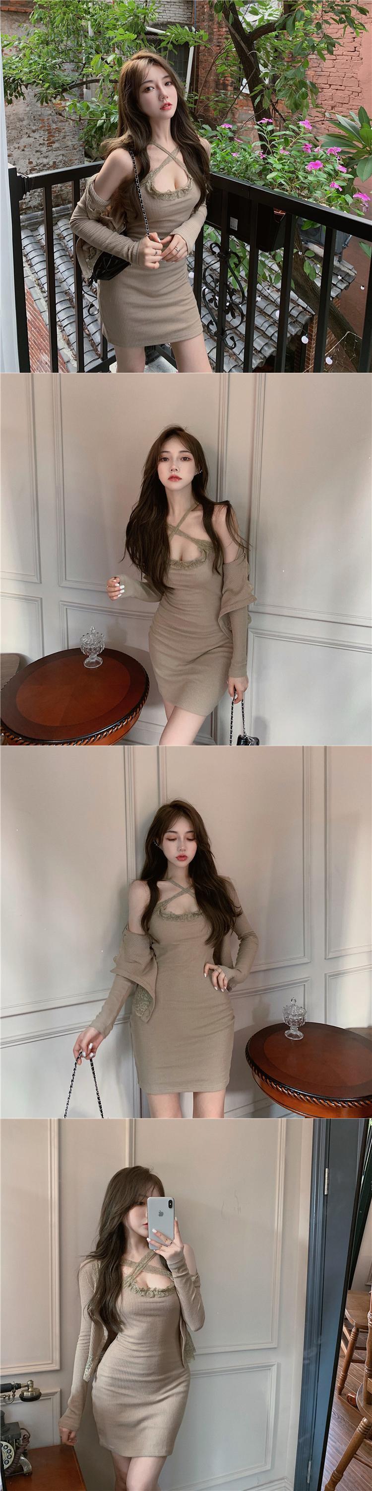 クロスワンピースレディース秋物レースショートスカート ウェストカーディガン オータム ウエスト YY27922360111
