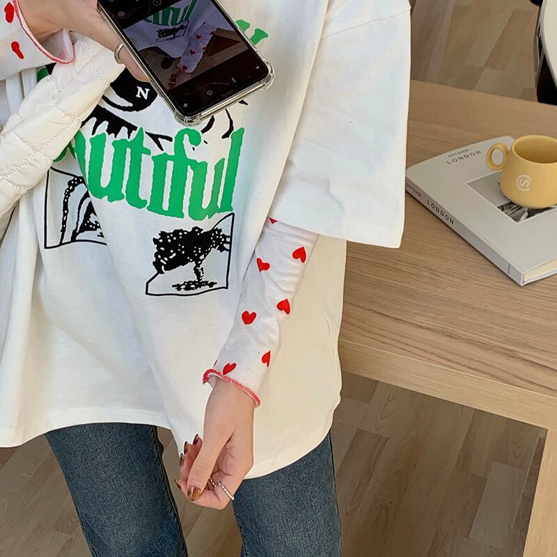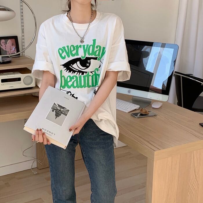 韓国ファッションルーズホワイトゆったりシャツ Tシャツ夏服カジュアルトップス 夏物 スタイル ミドル丈 MONROE17819505527