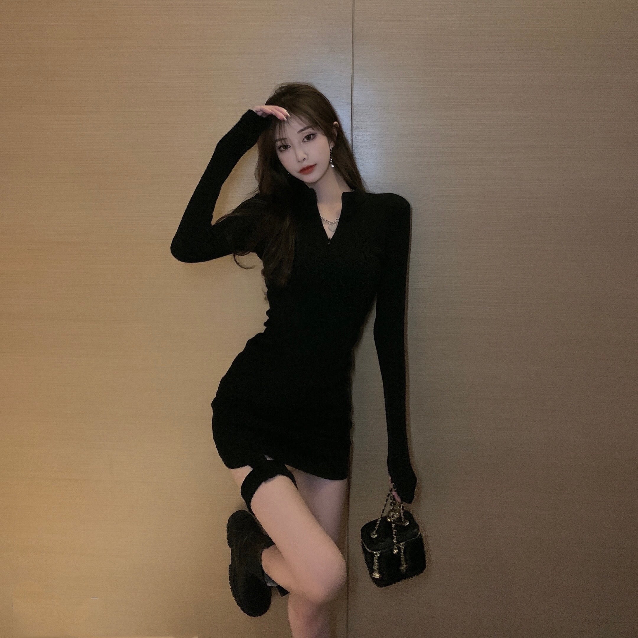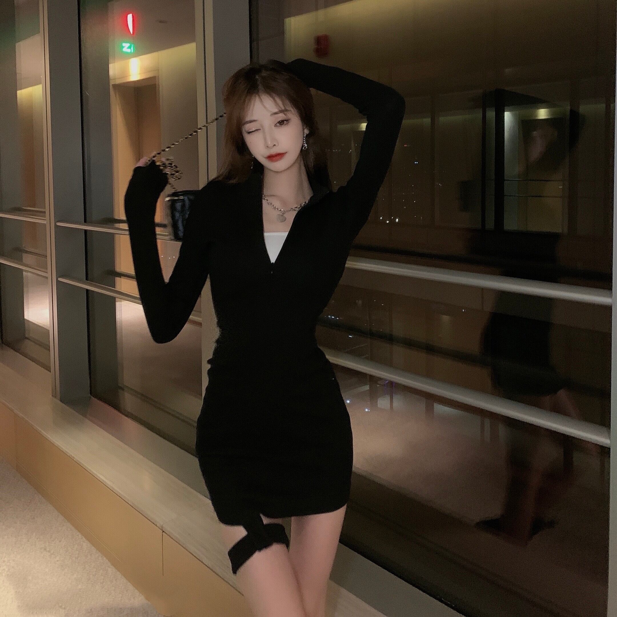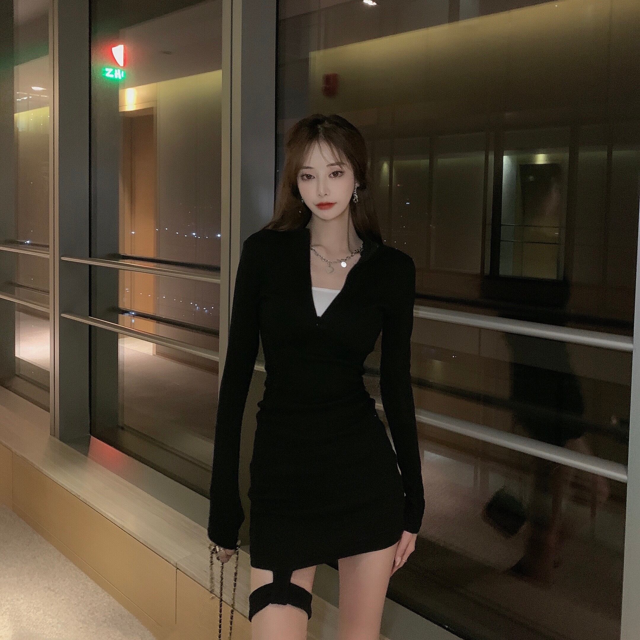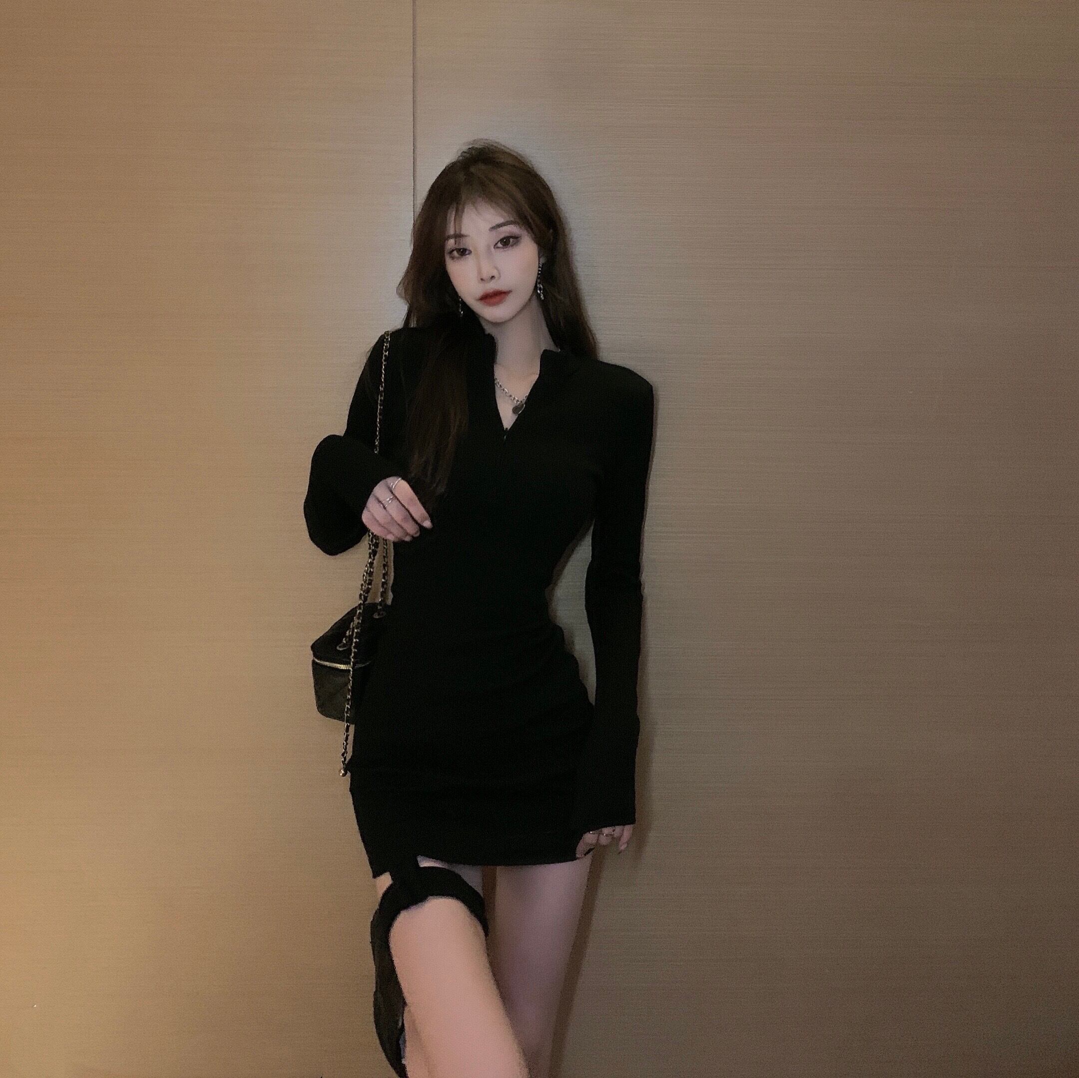 薄手ウェストブラックワンピース秋物ウィンターハイウェストショートスカート ロング オータム 冬物 長袖 ウエスト YY50511996585
