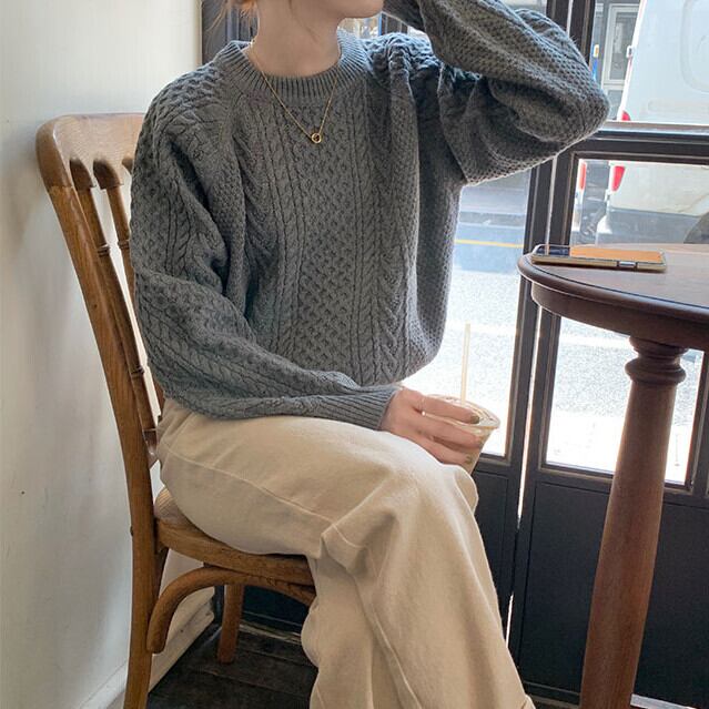 ルーズショートセーター コート スプリングニットトップス ロング 春物 長袖 MONROE6558012077