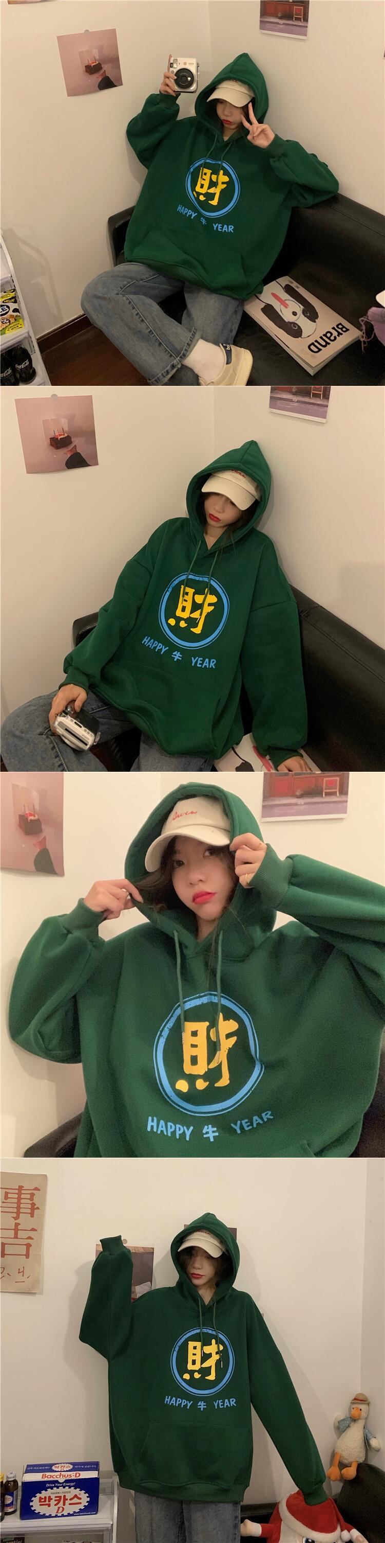 レッド厚みセーター 秋物ウィンター韓国ファッションルーズスタイルフードジャケット オータム 冬物 YY90156139657