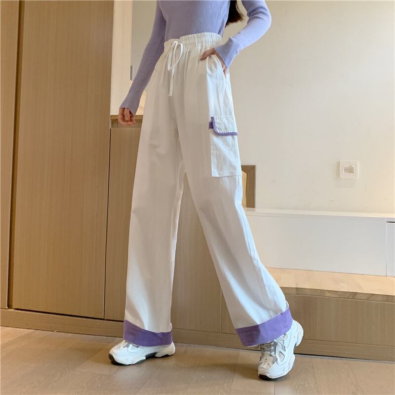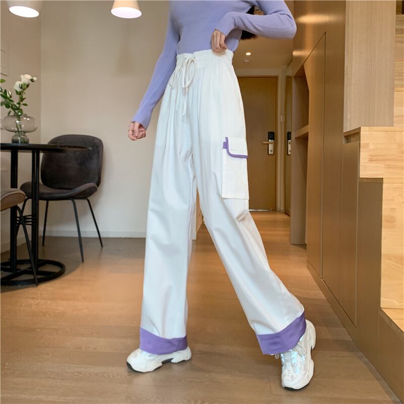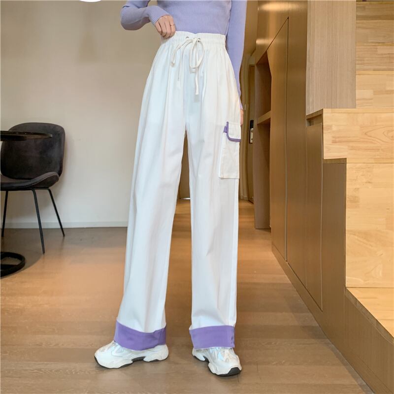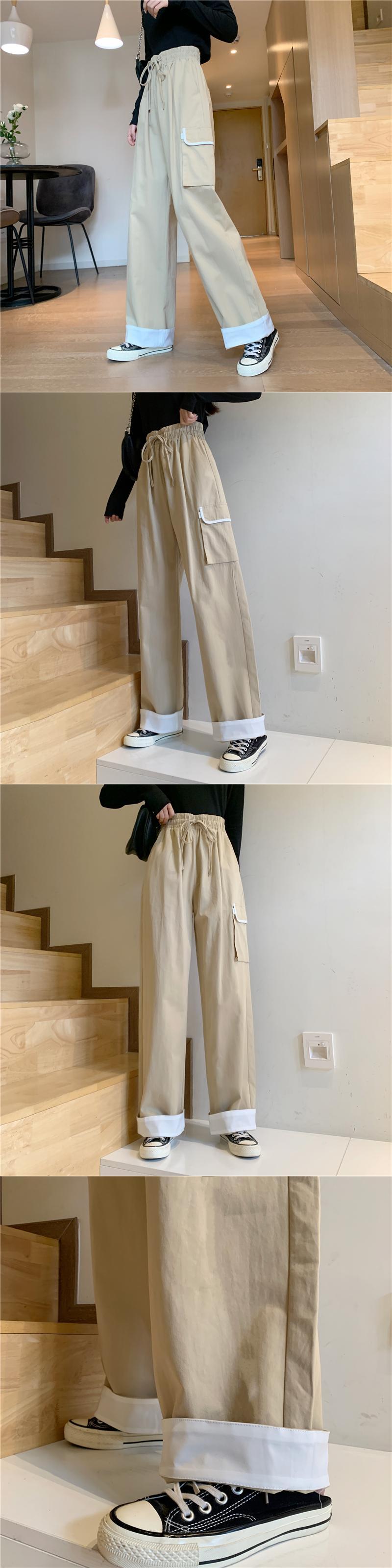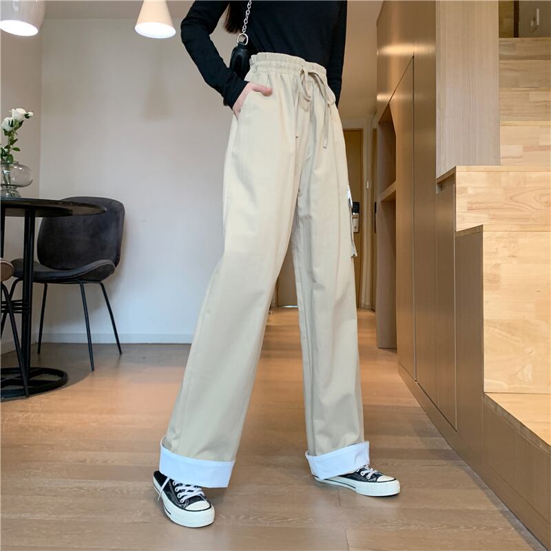 韓国ファッショントレンドパンツストレッチウェストルーズワイドレッグパンツ カジュアル秋物ロング エラスティック 伸縮 オータム ワイドパンツ スタイル ウエスト YY62368860458