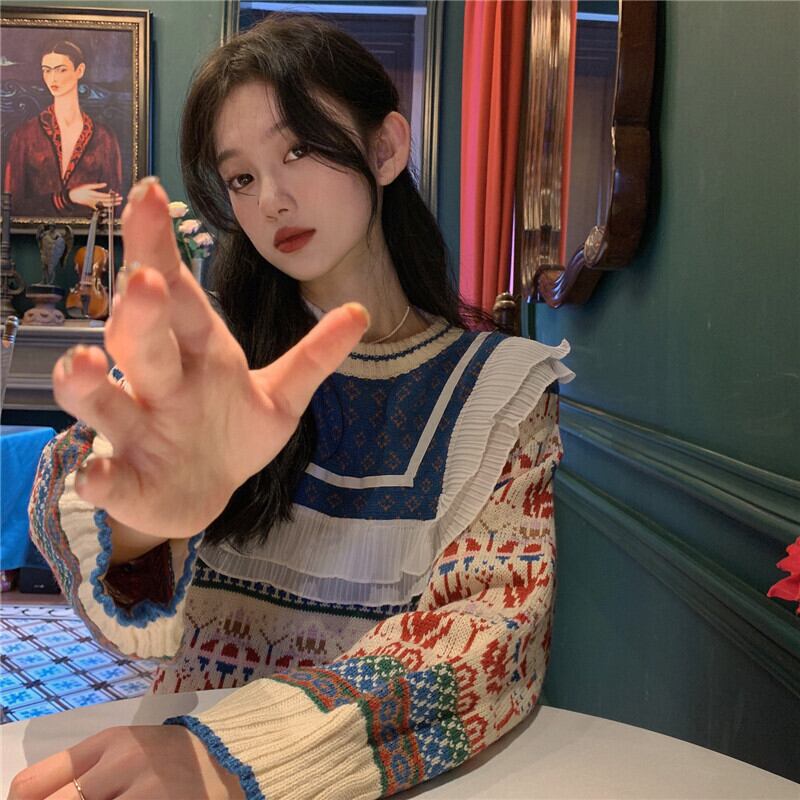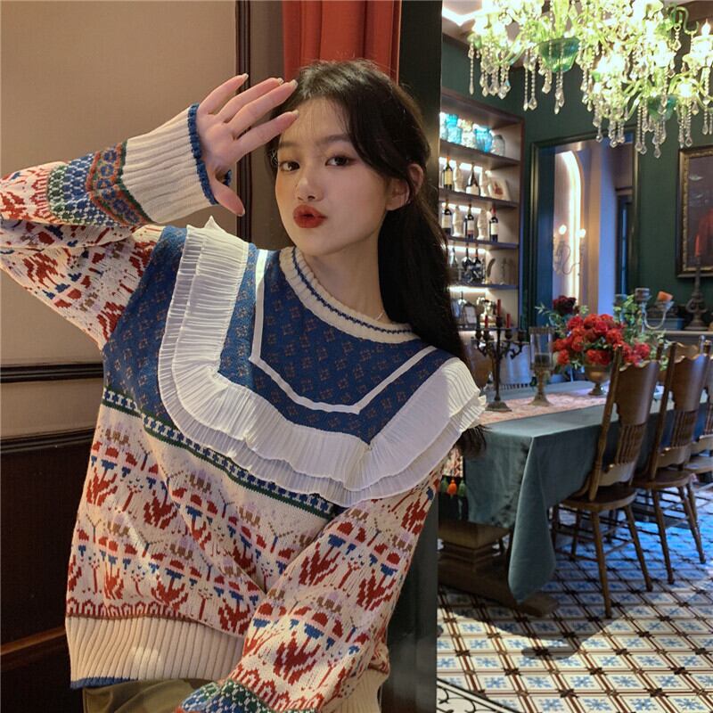 レッドセーター 秋物ウィンター韓国ファッションスタイルルーズトップス オータム 冬物 YY85212898702