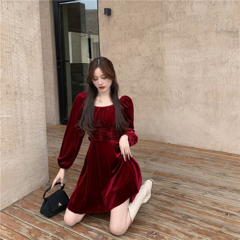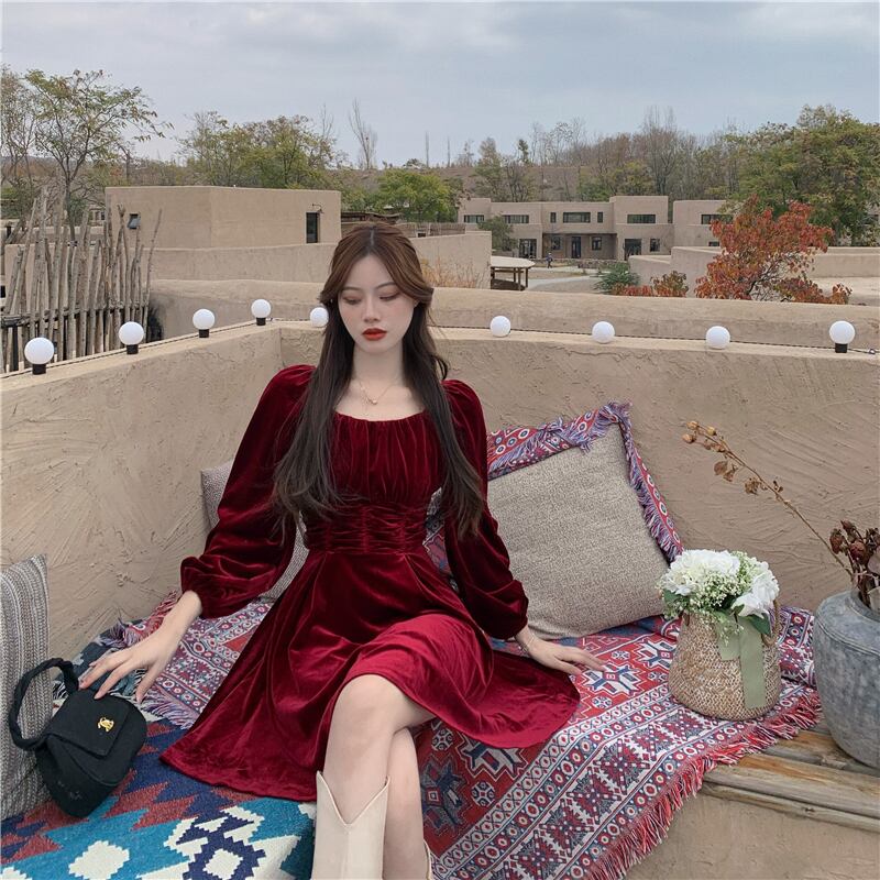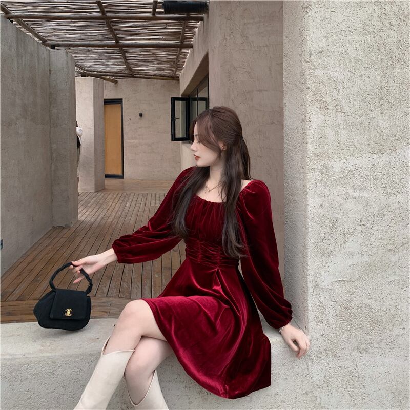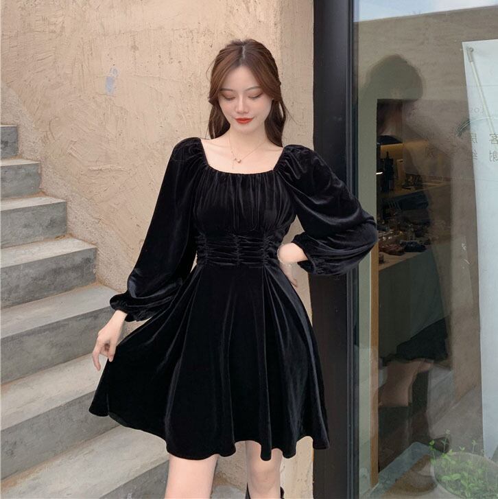 ワンピース韓国ファッション秋物ウィンターウェストカラースカート レディース ロング オータム 冬物 スクウェア スタイル 長袖 ウエスト YY27389181662