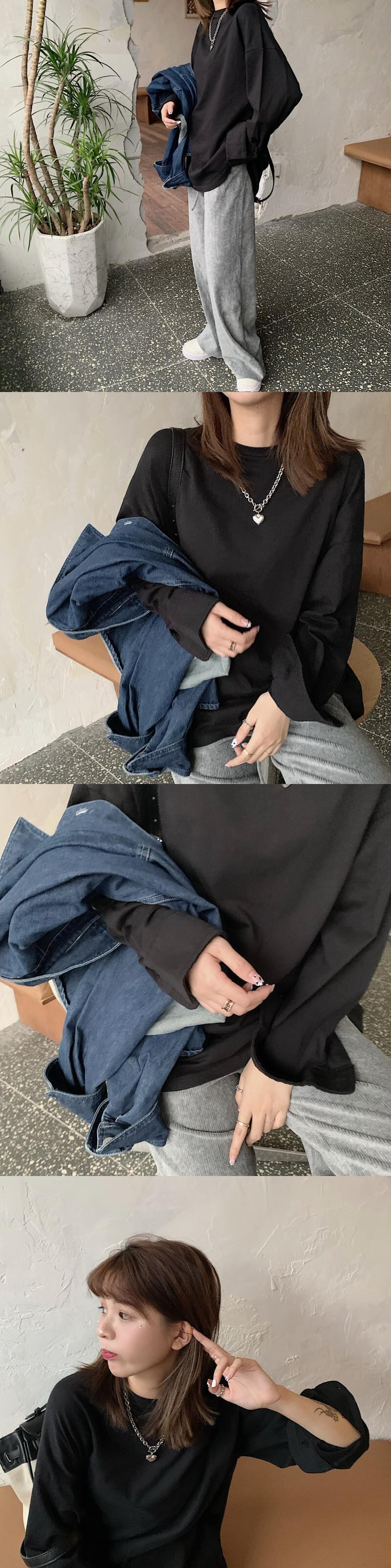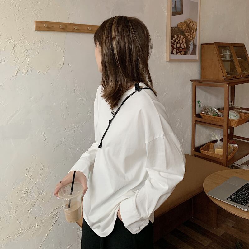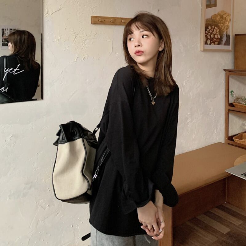 ゆったりシャツ ソリッド カラー秋物ウィンタールーズラウンドネックスリーブTシャツトップス ロング オータム 冬物 Oネック ソリッドカラー 長袖 ミドル丈 YY7978627943