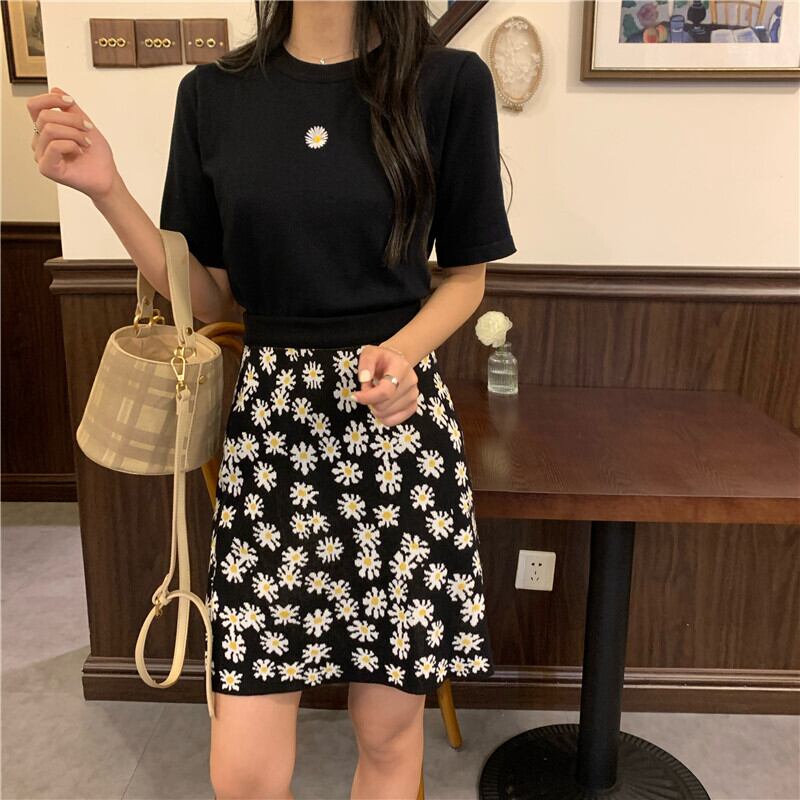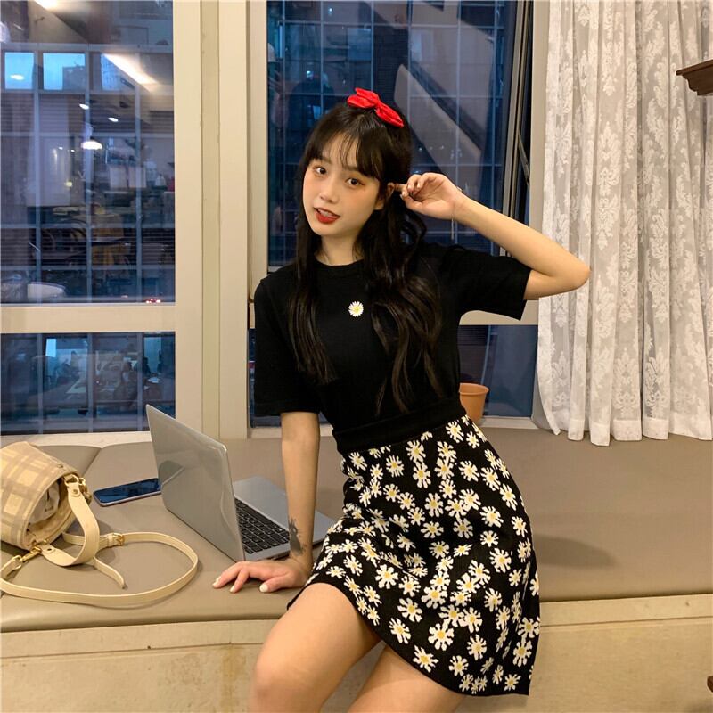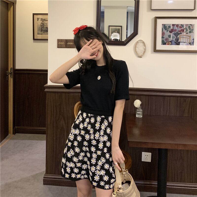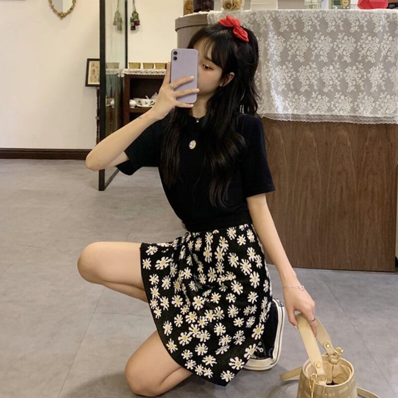 Aラインスカート レディーススプリング秋物韓国ファッション薄手スリムブラックTシャツ 春物 オータム スタイル ワンナンバー76632577692
