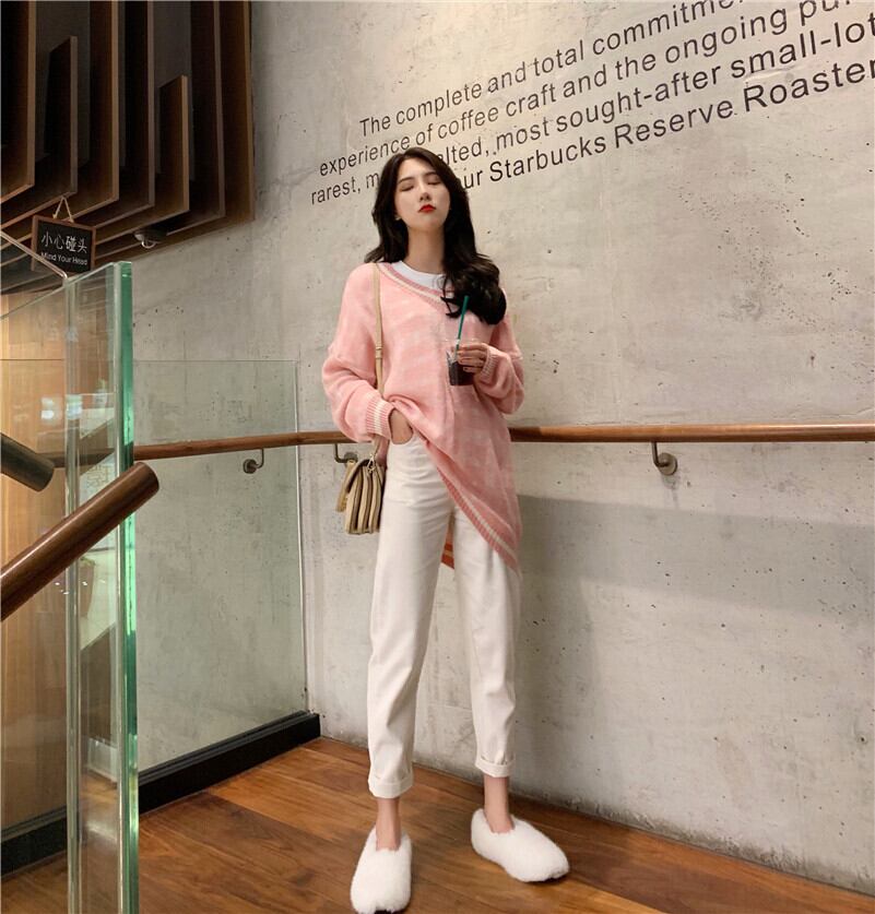 スプリング韓国ファッションハイウェストウェストカジュアルパンツ コーデュロイホワイト 春物 ウエスト YY40949869961