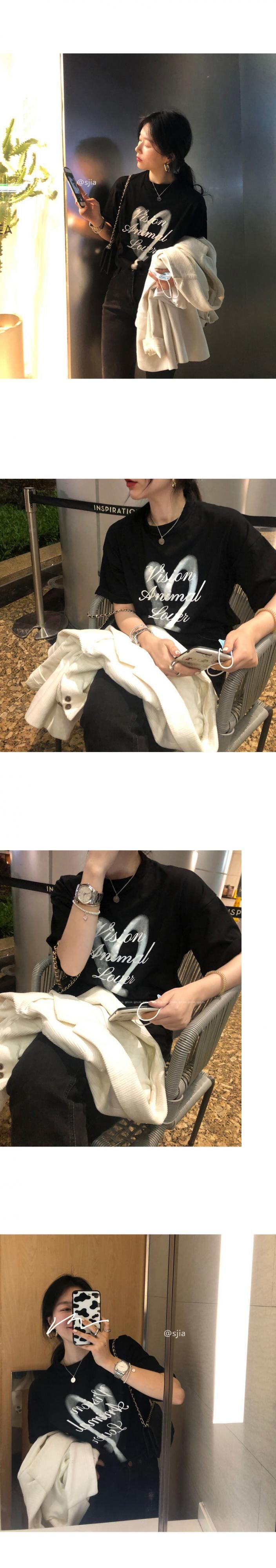 韓国ファッションルーズブラック夏服カジュアルTシャツレディーストップス コットン 夏物 スタイル MONROE12914996877