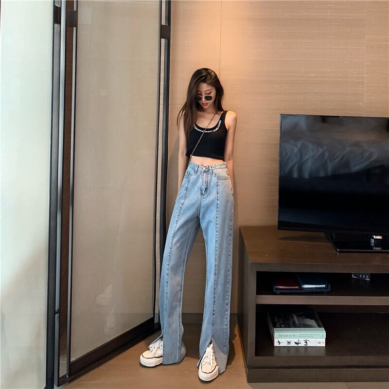 スリットジーンズ 韓国ファッションハイウェストウェストレディーススプリング薄手ルーズ 春物 スタイル ウエスト YY39058170201