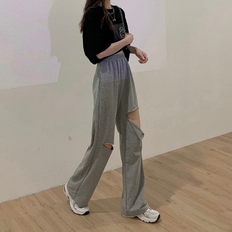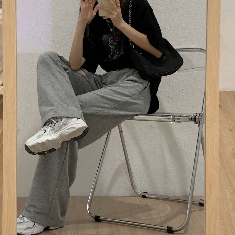 グレーパンツ ルーズレディーススプリング秋物薄手ワイドレッグハイウェストウェストカジュアル 春物 オータム ワイドパンツ ウエスト MONROE62501270694