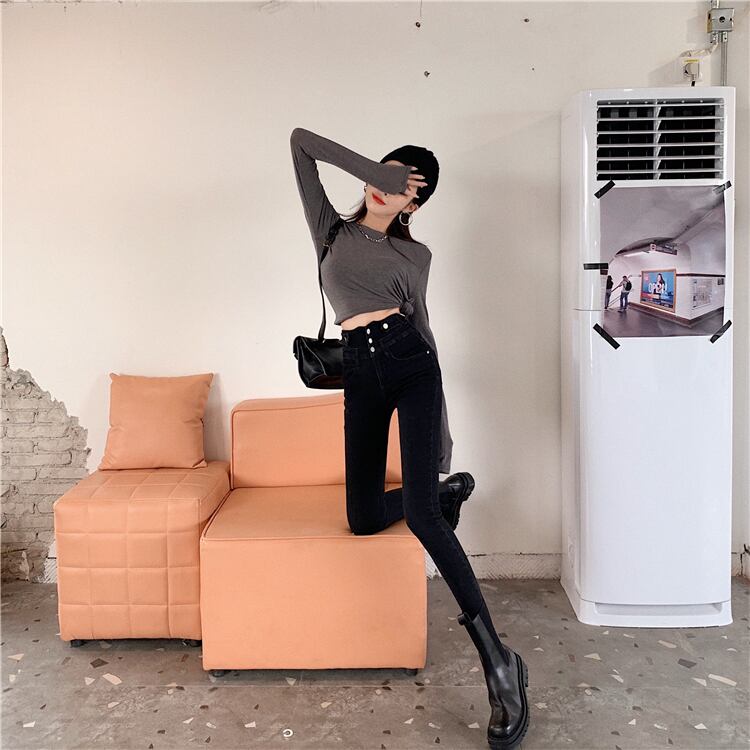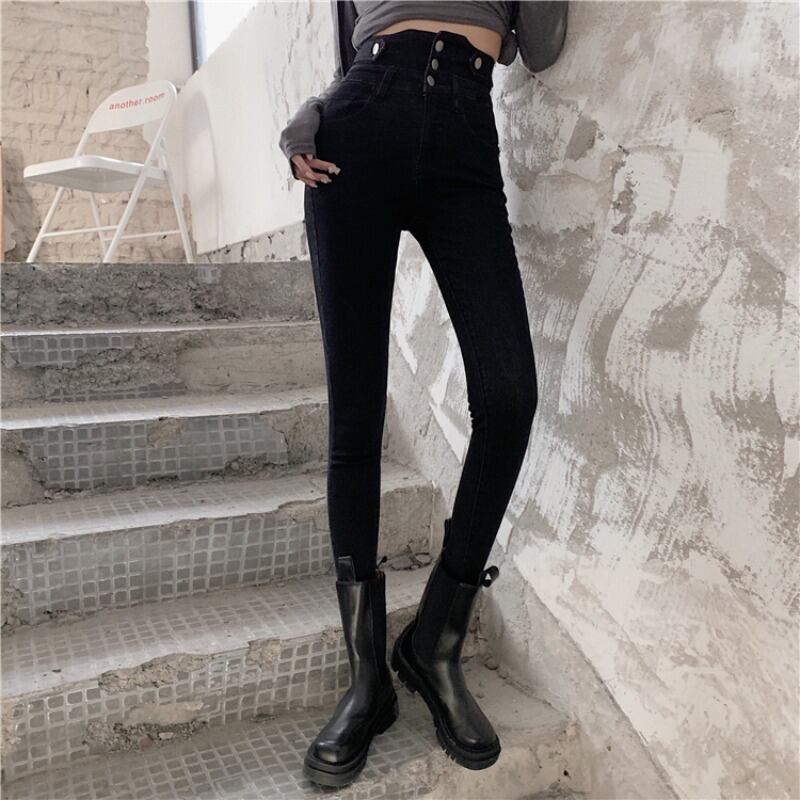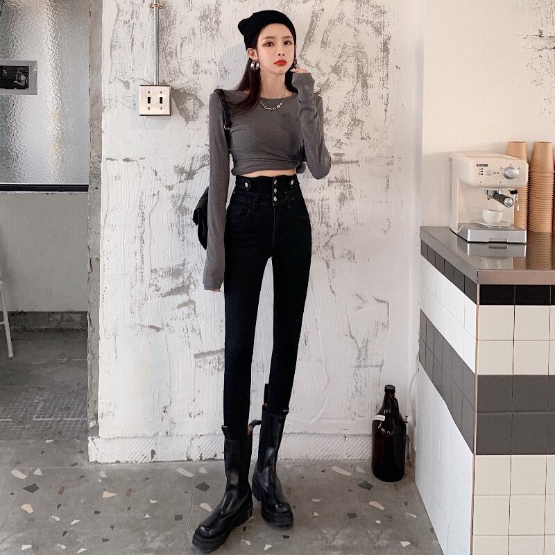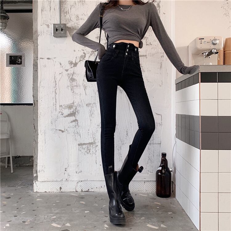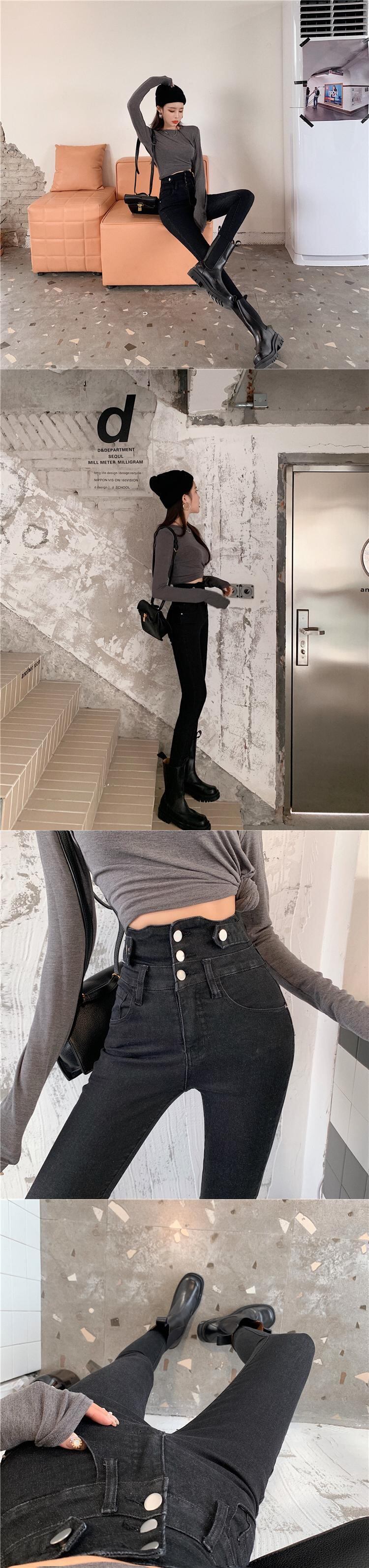 ハイウェストジーンズ レディーススタイル韓国ファッション厚みパンツ ウィンター 冬物 ウエスト YY28827169166