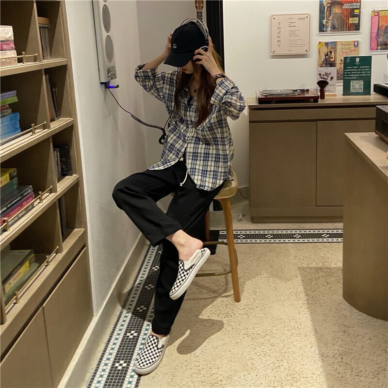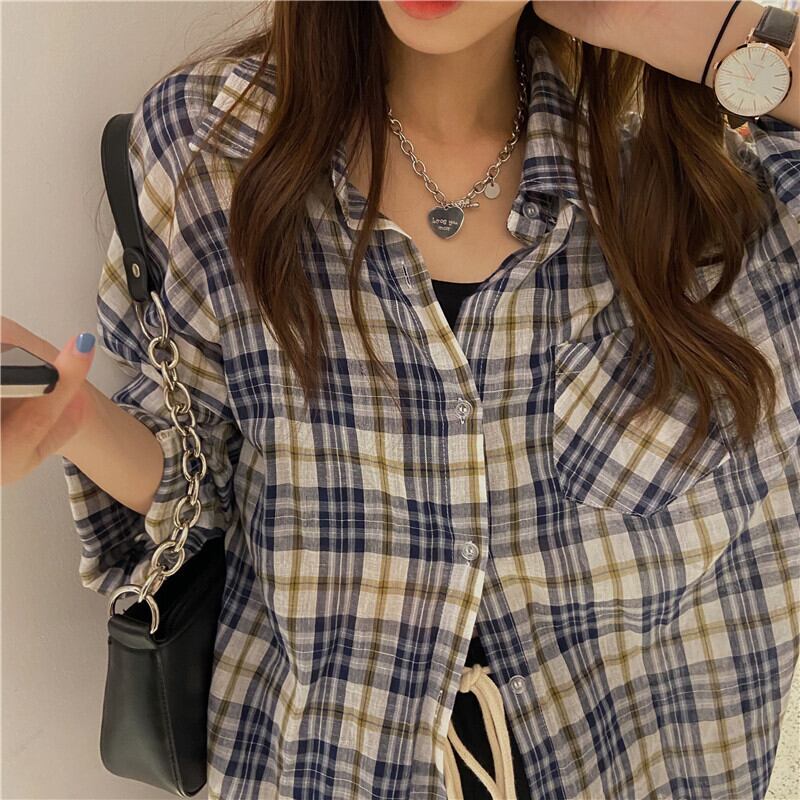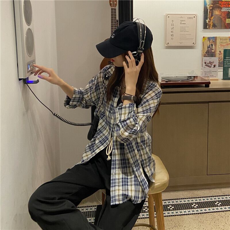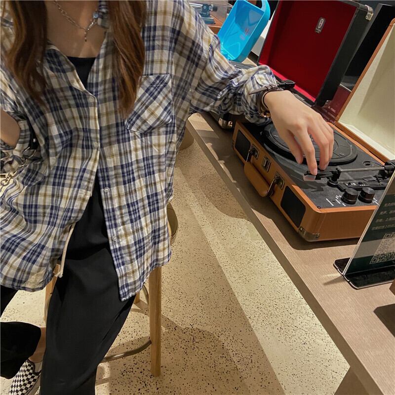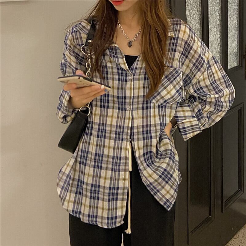 スプリングスタンダードルーズ格子柄シャツ 韓国ファッショントップス コート レトロ 春物 スタイル MONROE39642576490
