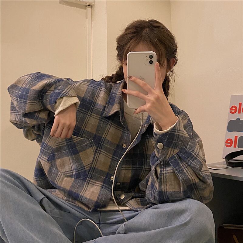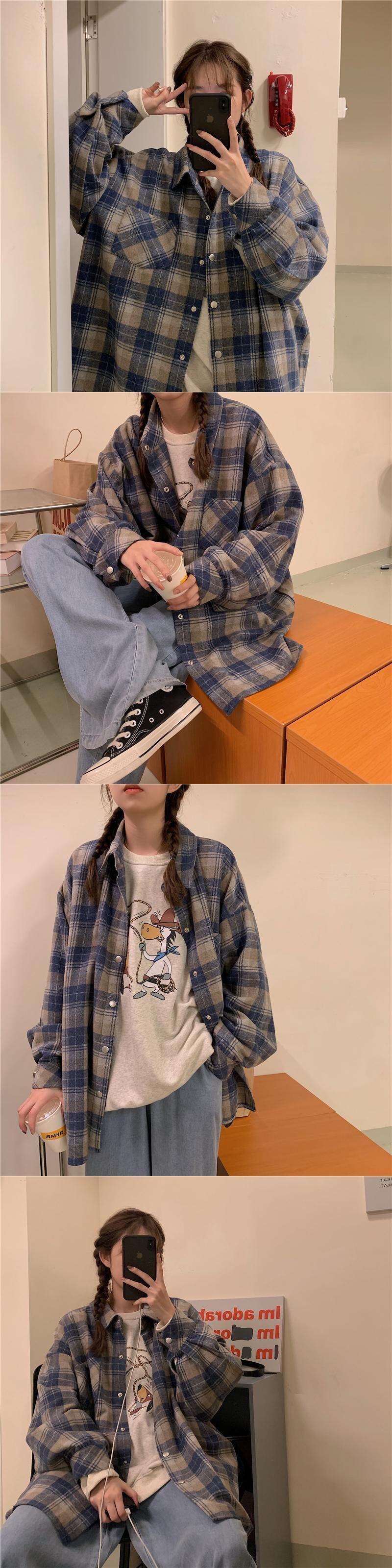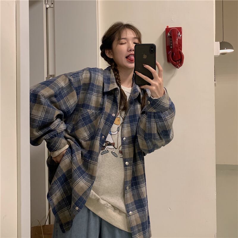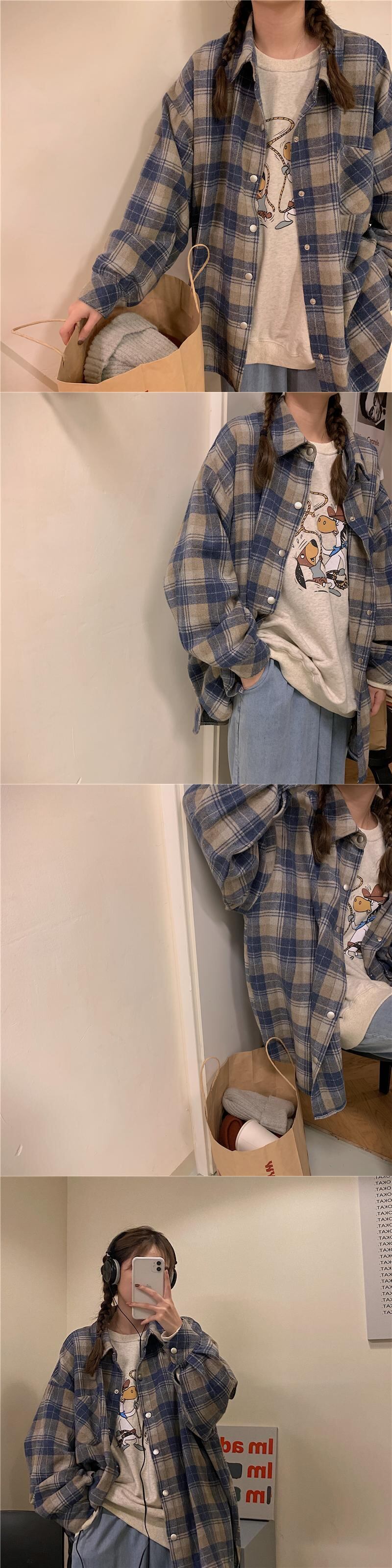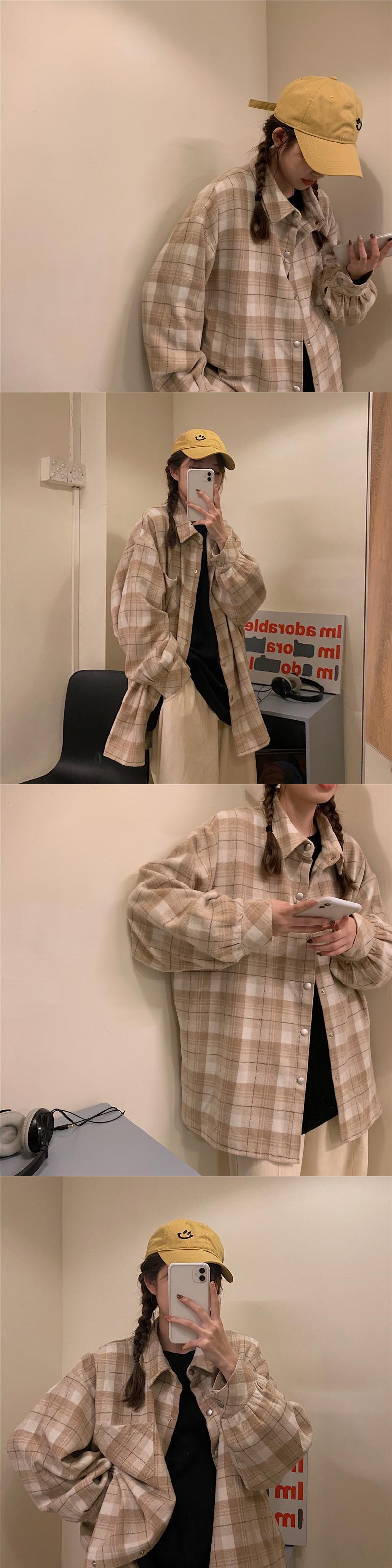 格子柄シャツ スプリング秋物ルーズジャケット ロング 春物 オータム 長袖 YY42232745180