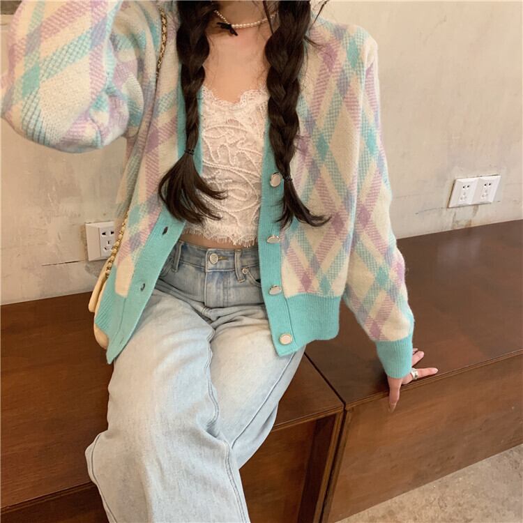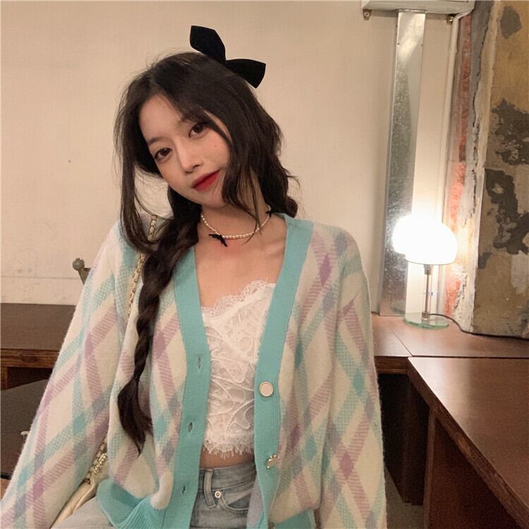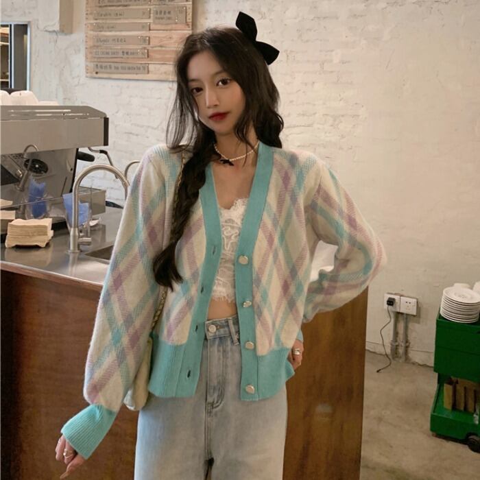 スプリング韓国ファッションルーズ薄手セーター コート レディースVネックショートカーディガントップス ロング 春物 スタイル 長袖 ワンナンバー83990361995