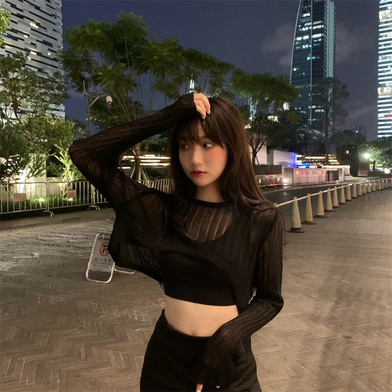 ショートブラックニットセーター スプリングジャケット ブラウス ロング 春物 長袖 YY22880861035