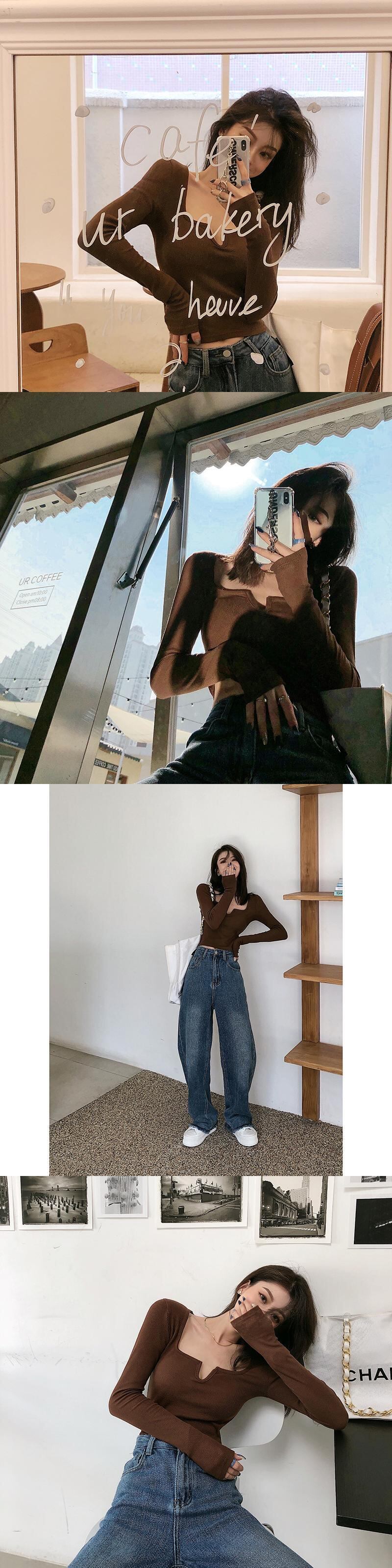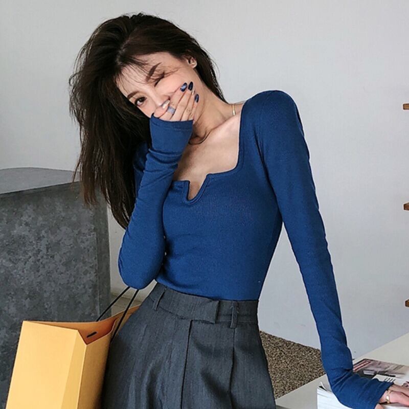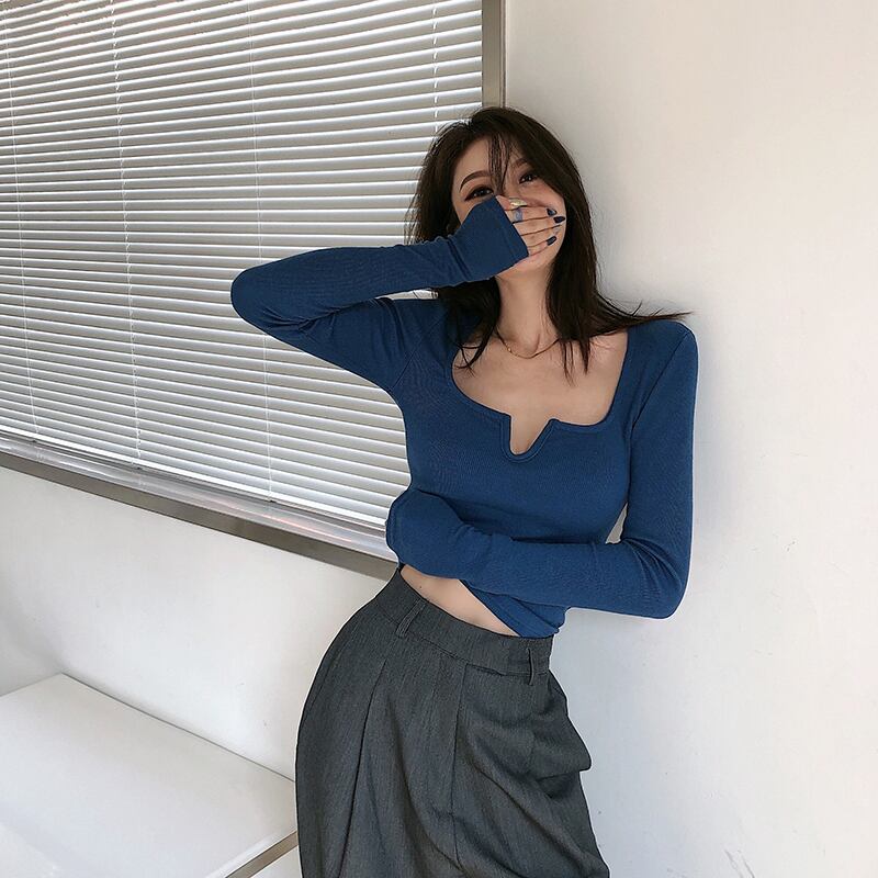 スプリング秋物ショートスリムTシャツシャツ カラーソリッド ゆったりトップス ロング 春物 オータム ソリッドカラー スクウェア 長袖 YY83309169408