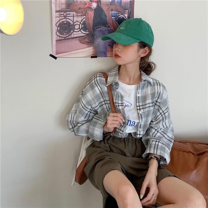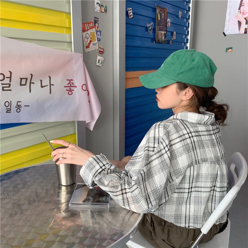 スタンダード格子柄シャツ レディースルーズジャケット スプリング ロング レトロ 春物 長袖 ミドル丈 MONROE39626173305
