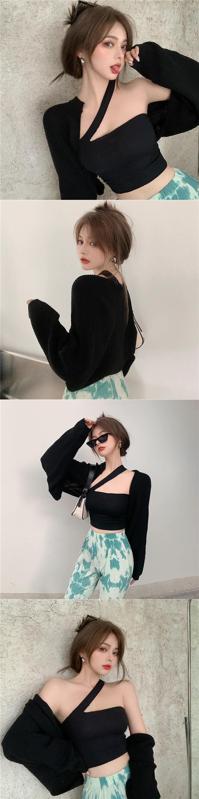 色:ピンクチューブトップ,黒いチューブトップ,アプリコットカーディガン,ブラックカーディガン
