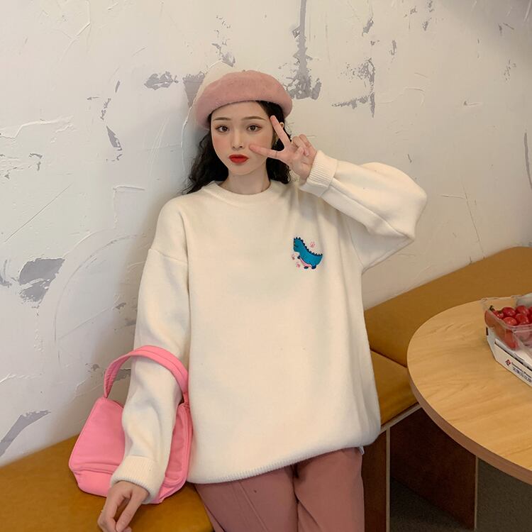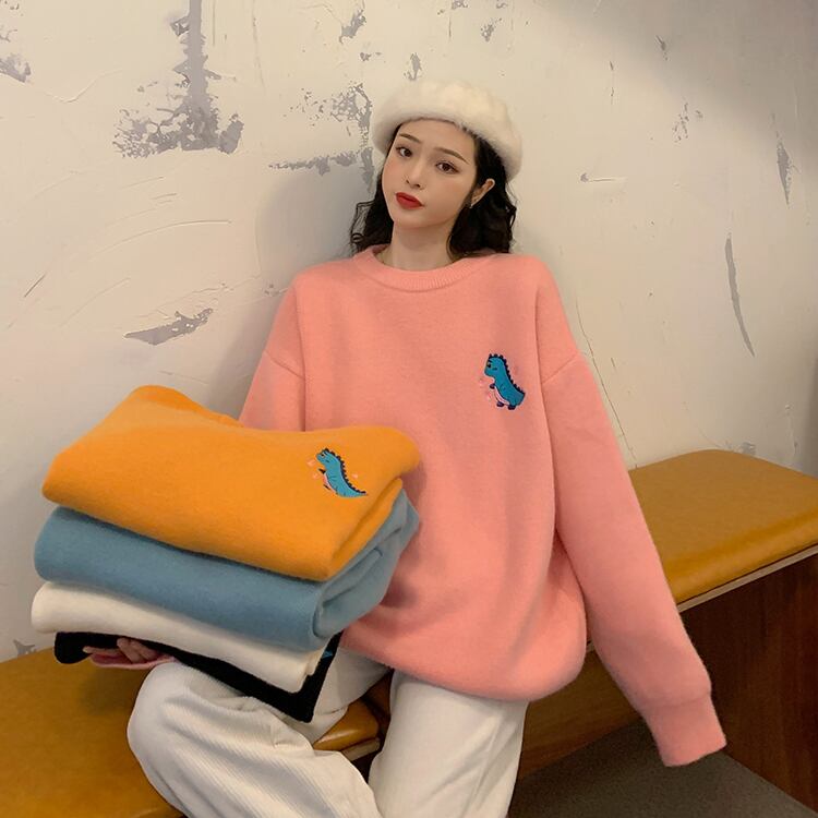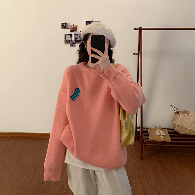 セーター 秋物ウィンタールーズラウンドネックプルオーバー ゆったりトップス オータム 冬物 Oネック YY76379210216