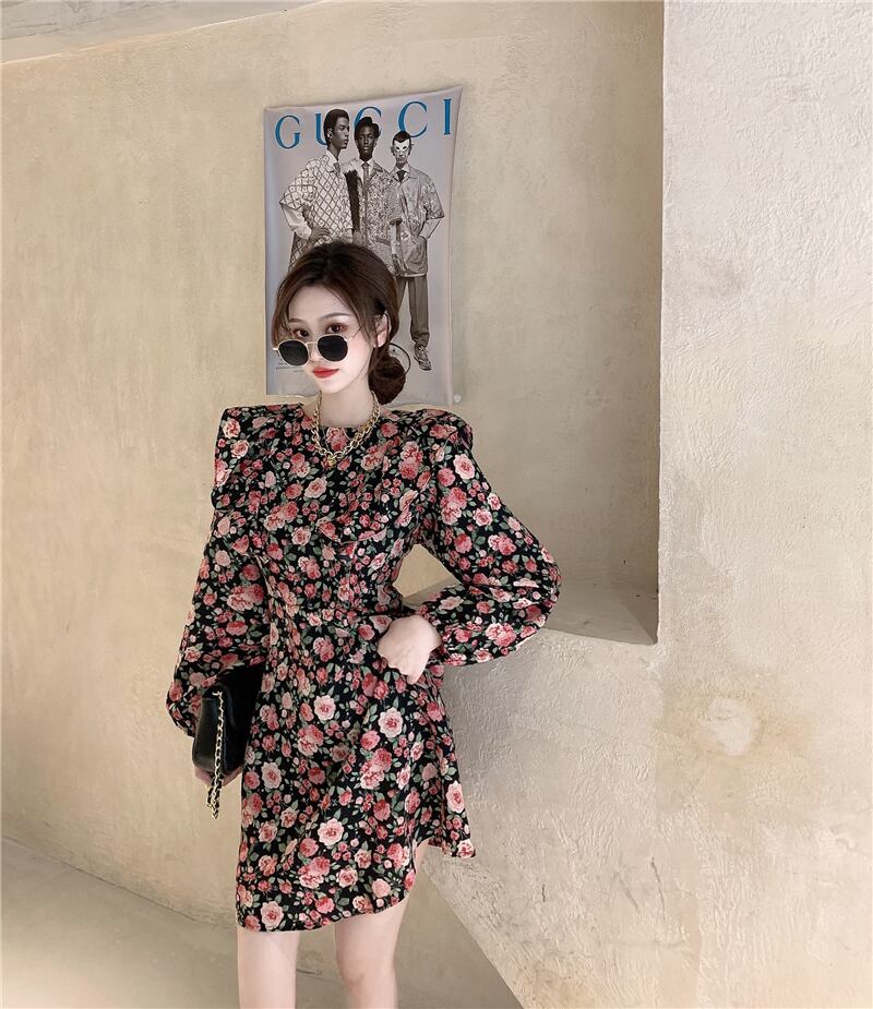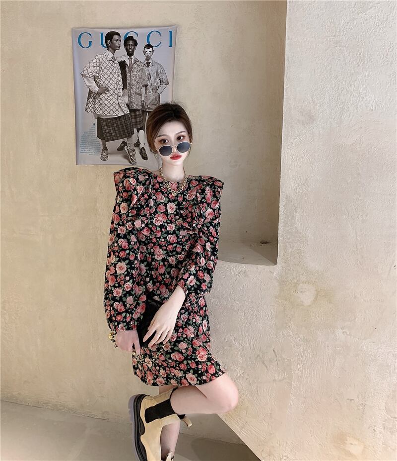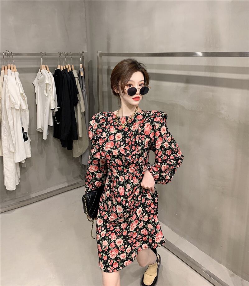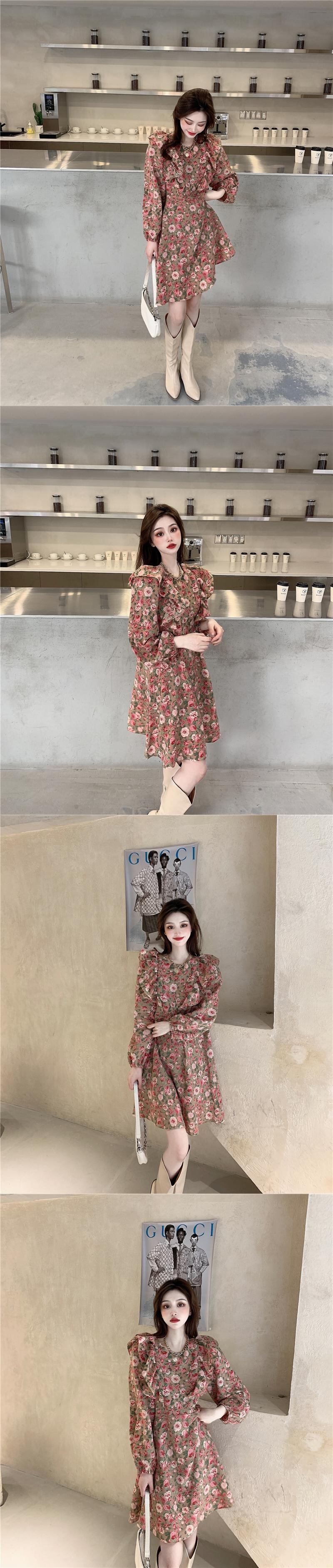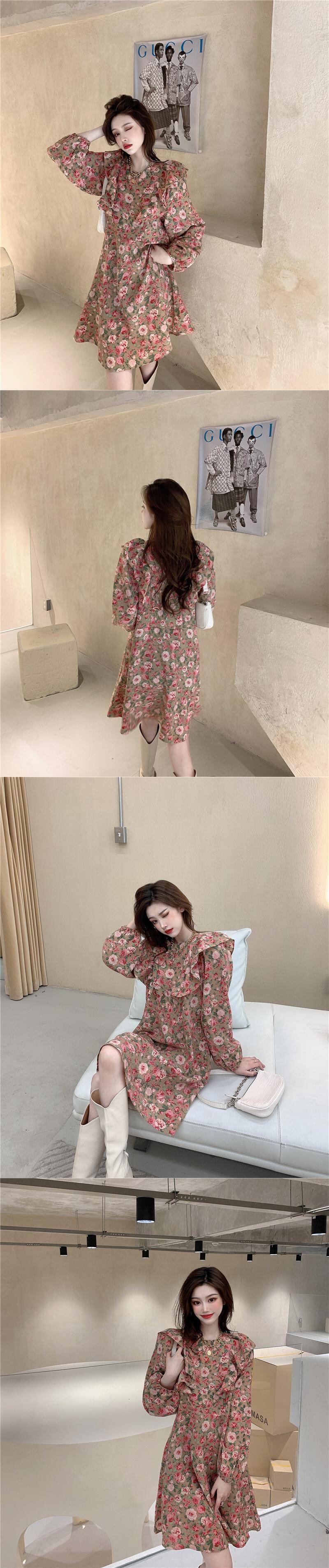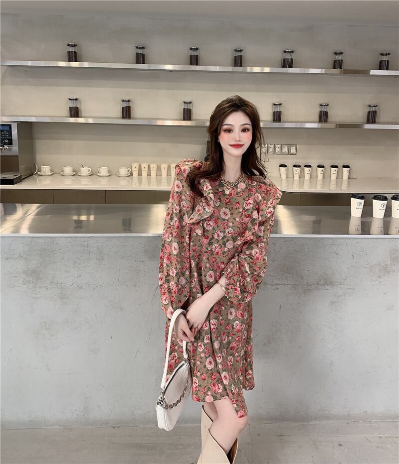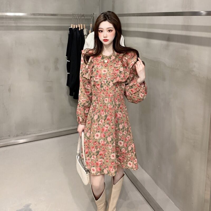 フローラルワンピーススタンダードスプリングゆったりスカート レディース ロング レトロ 大人ガーリー スウィート キュート カジュアル 春物 花柄 フラワーデザイン 長袖 YY63411799465