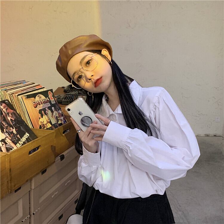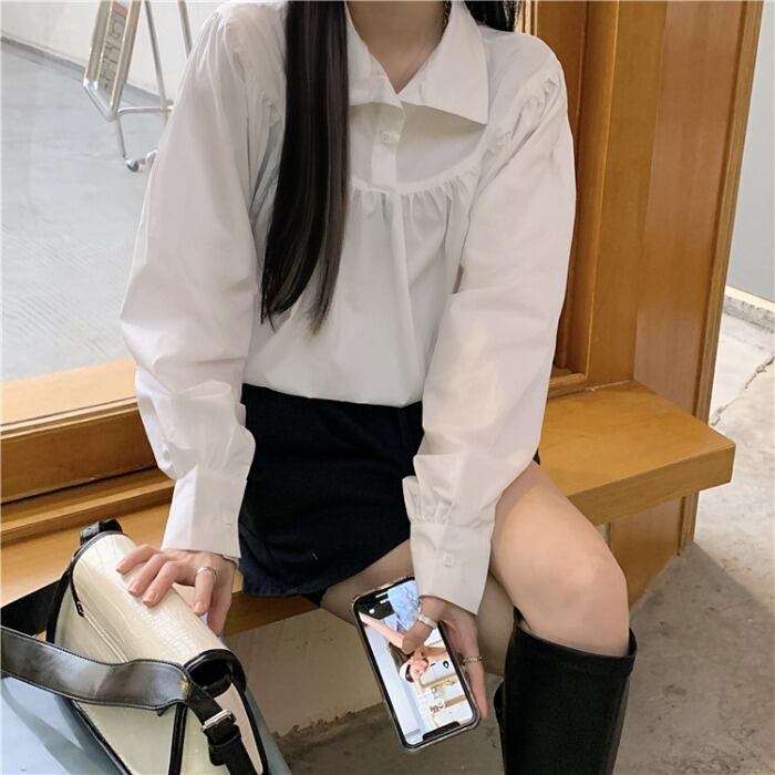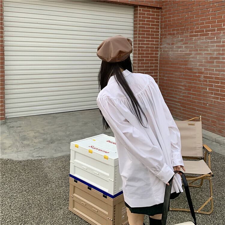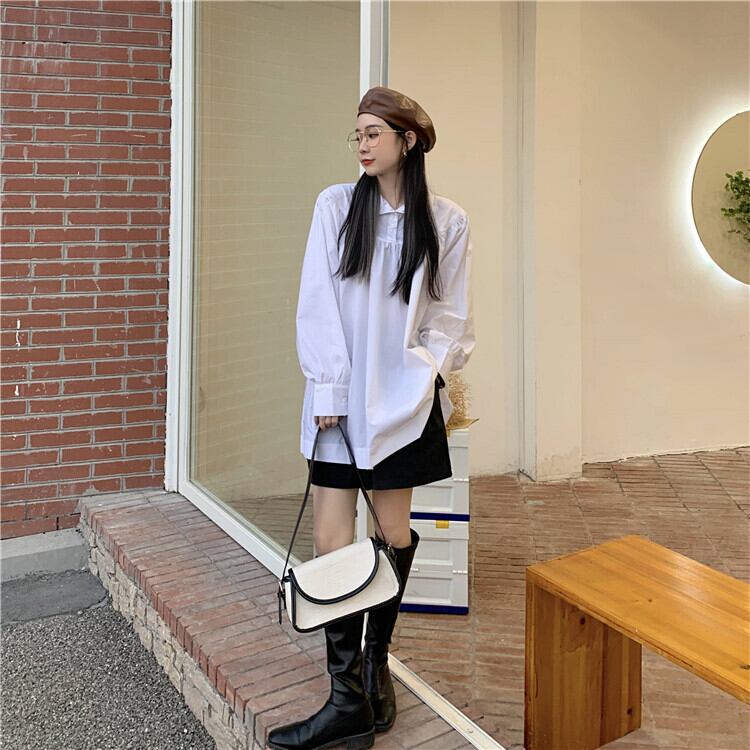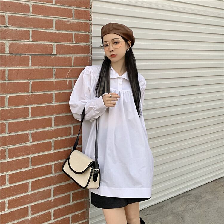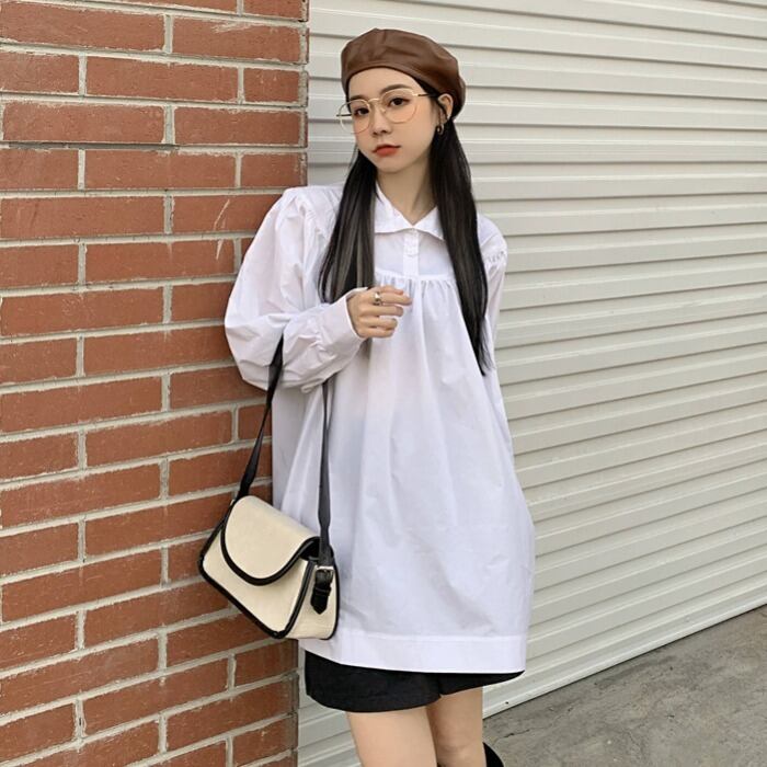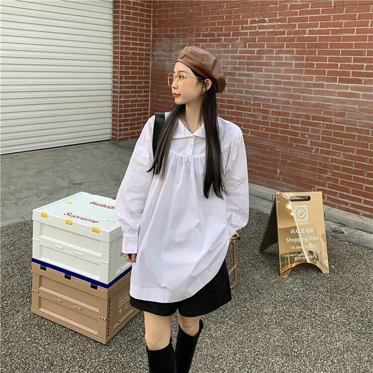 ホワイトシャツ レディーススプリングルーズ韓国ファッショントップス ロング 春物 スタイル 長袖 MONROE19554082567