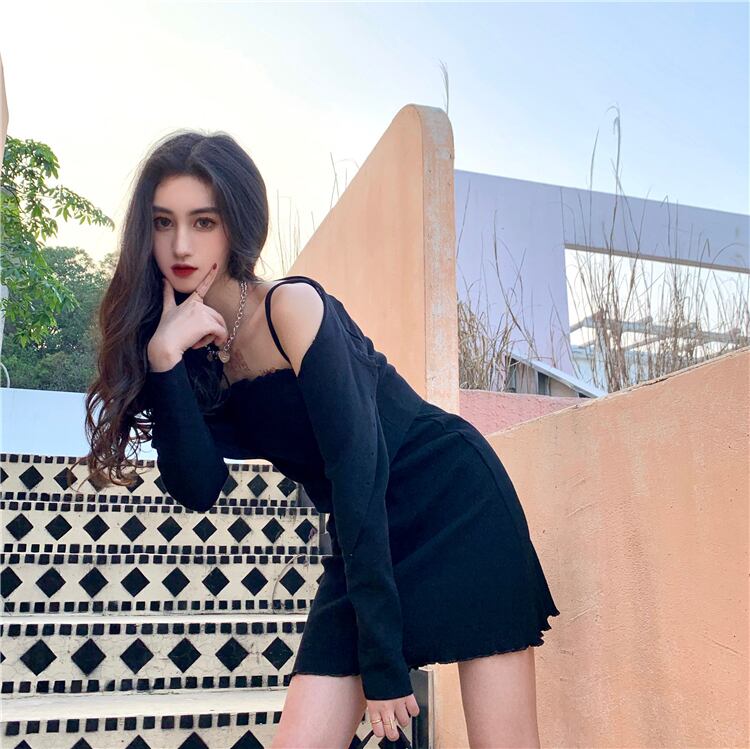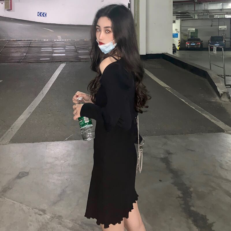 スタンダードワンピーススプリング秋物レディーススリムショートスカート ブラック レトロ 春物 オータム ワンナンバー50306284551