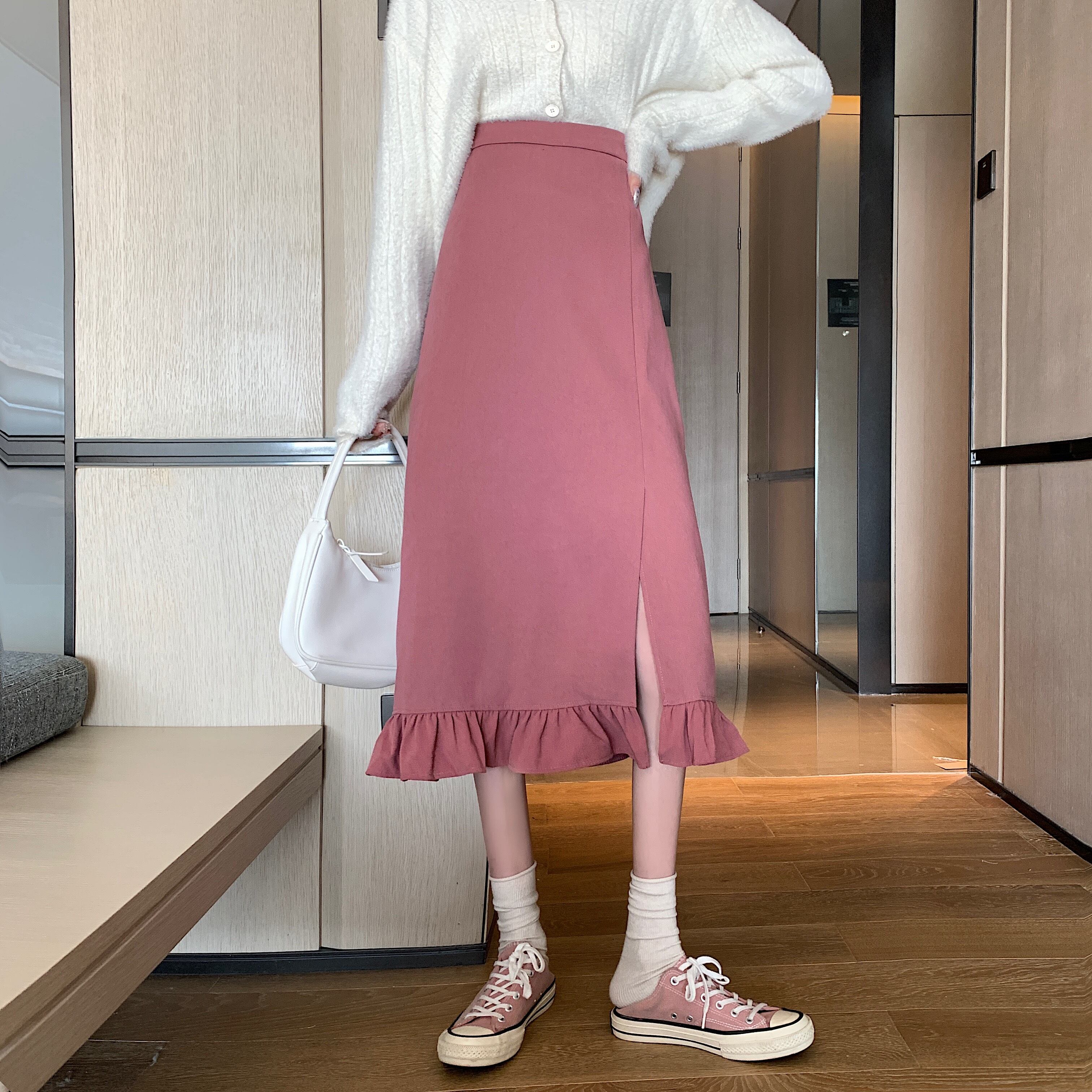 ブラックスカート 秋物ウィンターレディースAラインスタイル薄手 オータム 冬物 ミドル丈 YY29014115610