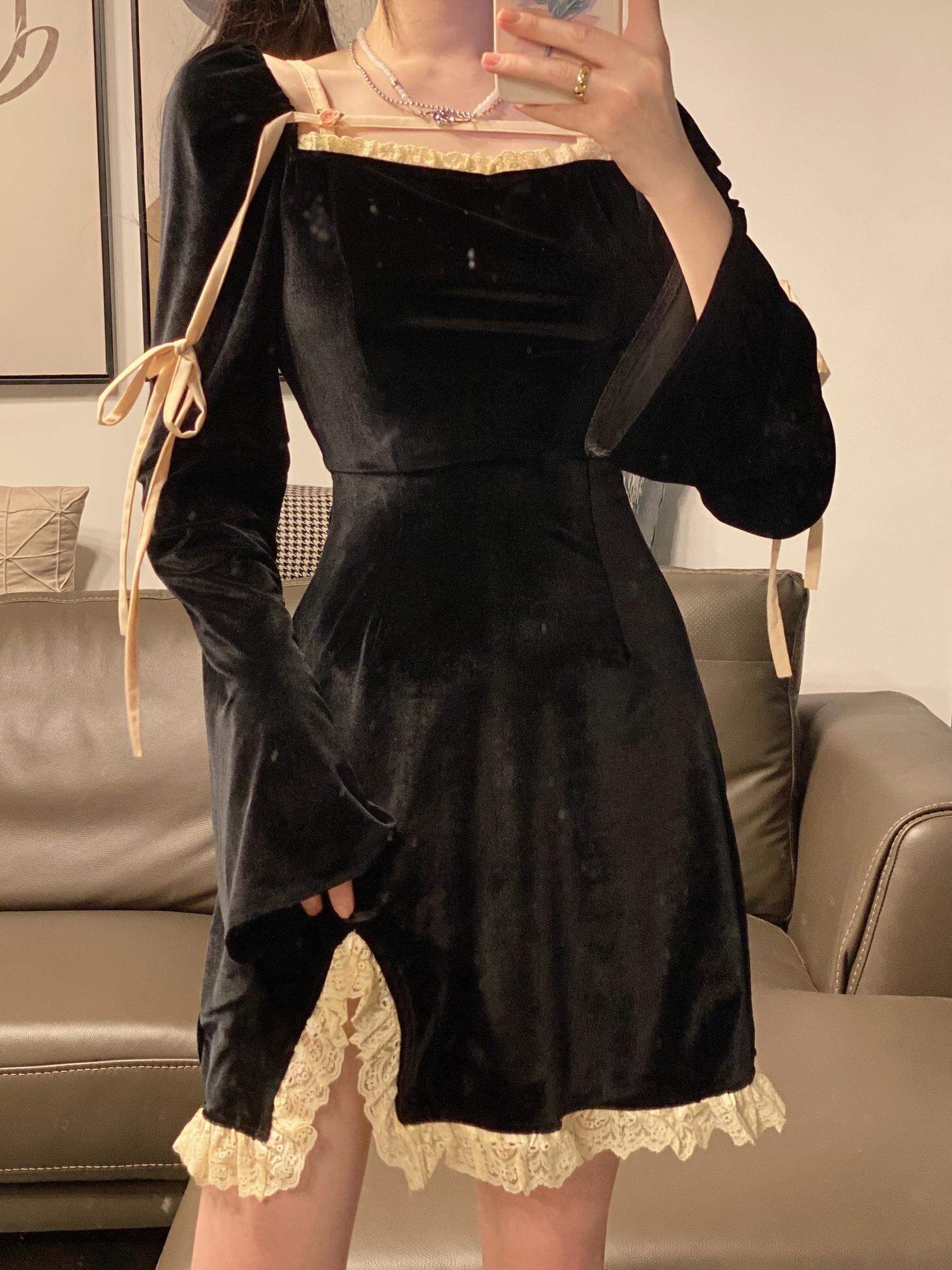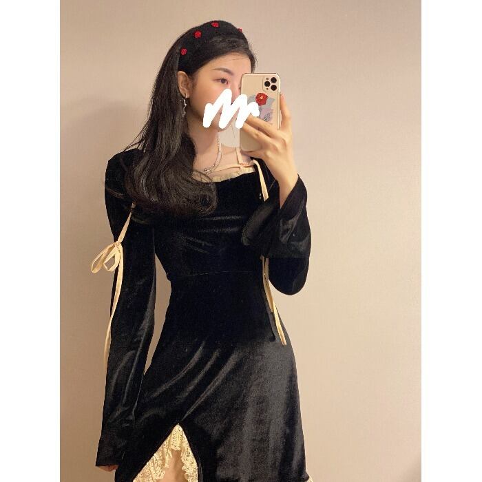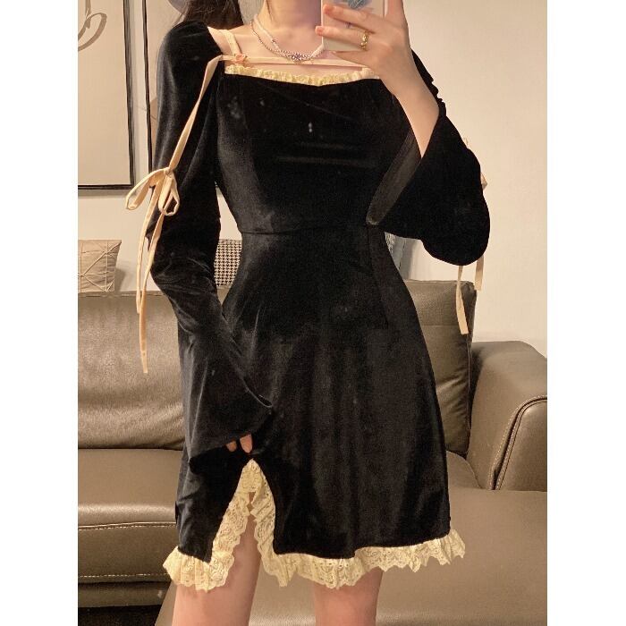 スタンダードブラックワンピースレディーススカート スプリング薄手ショートAライン レトロ 春物 MONROE60004409499