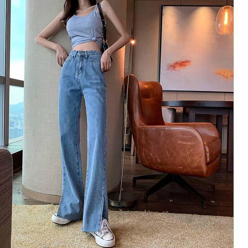 ジーンズ レディーススプリング韓国ファッションルーズワイドレッグパンツ ハイウェストウェストスリム 春物 ワイドパンツ ウエスト YY77166196276