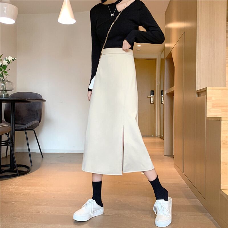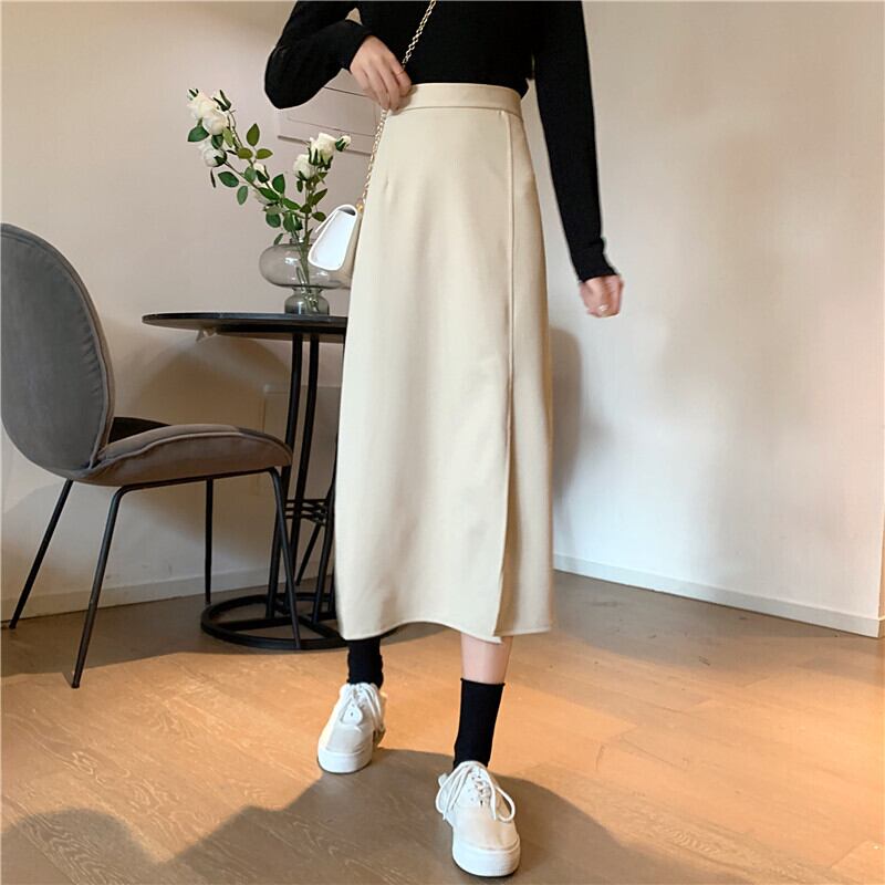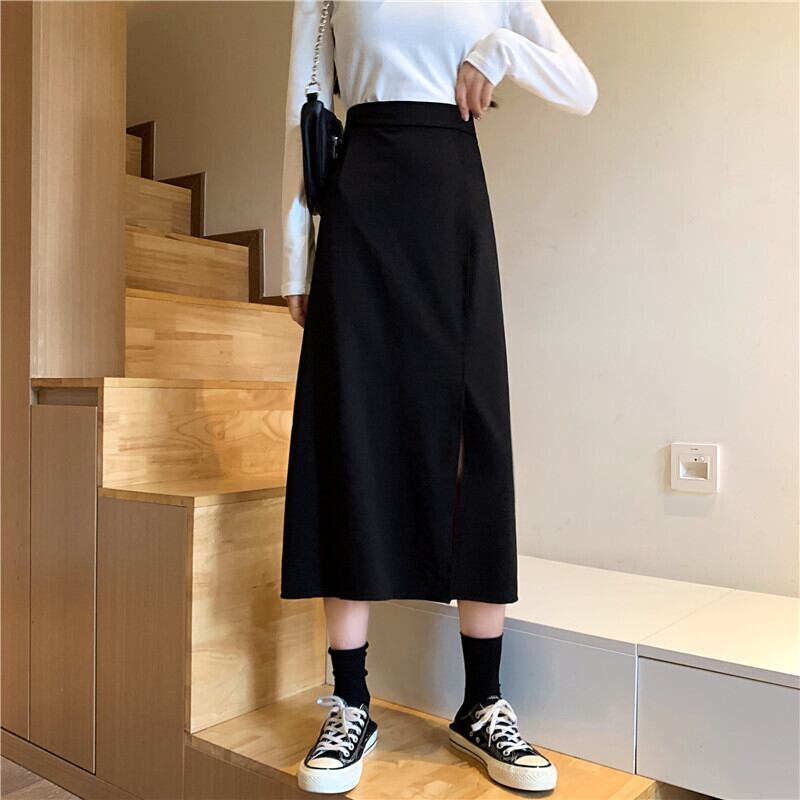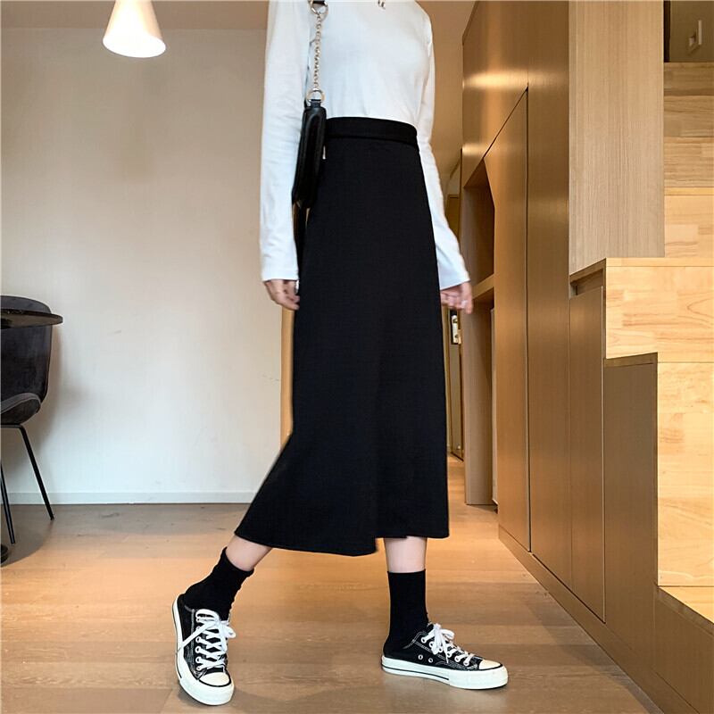 スプリングスカート レディースAライントレンドハイウェストウェスト薄手ブラック 春物 ウエスト ミドル丈 ワンナンバー46180452434