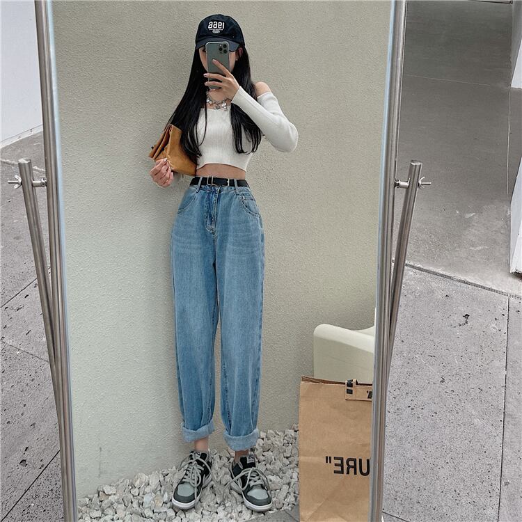 スプリング秋物スタンダードハイウェストパンツ ルーズ薄手ジーンズ レトロ 春物 オータム ウエスト YY52579285231