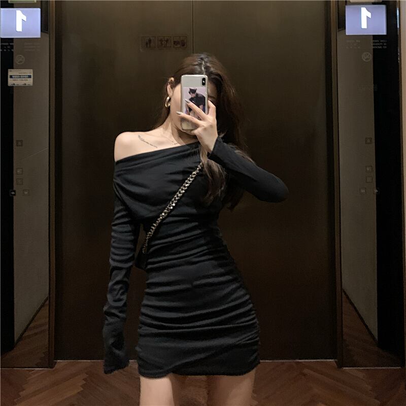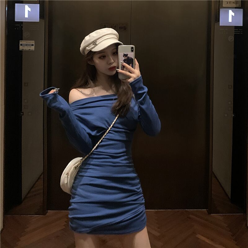 ゆったりスカート 秋物カラースリムショートワンピース ロング オータム ピュア 長袖 YY28588975649