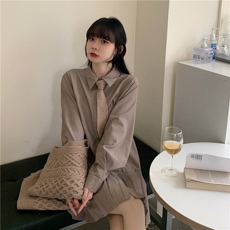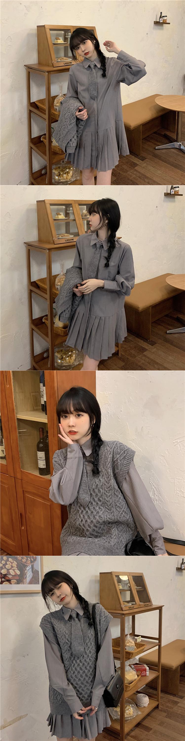 レディース秋物ウィンターVネックニットプリーツワンピース オータム 冬物 YY39681643379