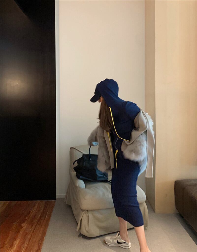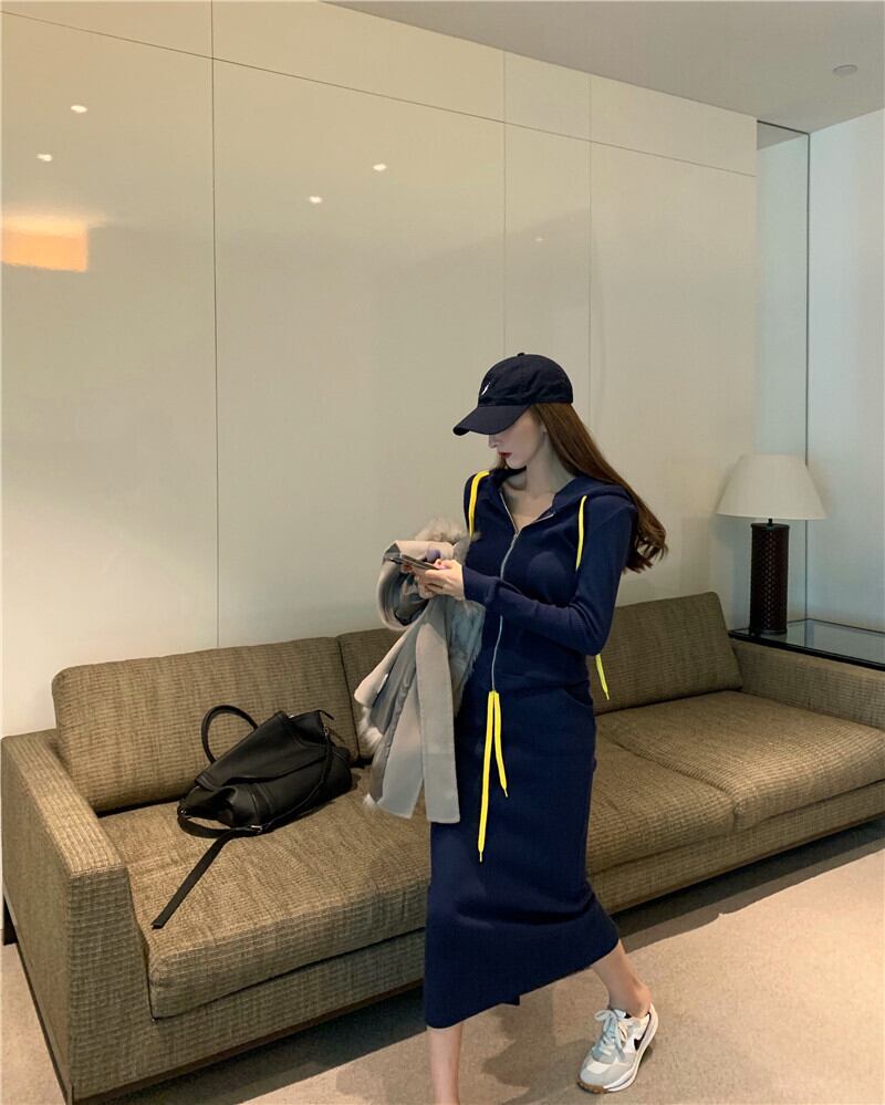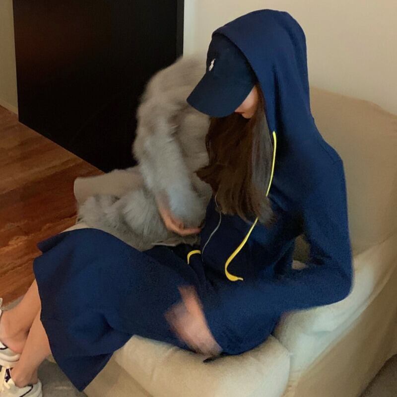 フードセーター ジャケット カジュアルルーズ韓国ファッションスタイルスリムスカート レディーススプリング ロング 春物 長袖 YY35109397547