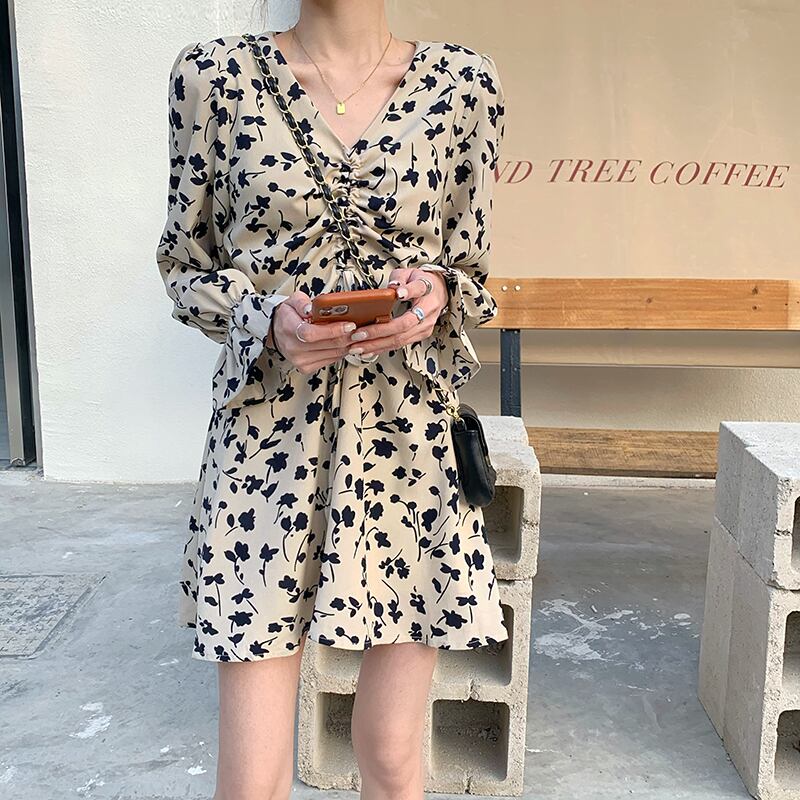 スプリングギャザーシフォンフローラルワンピース 春物 花柄 MONROE86840959135