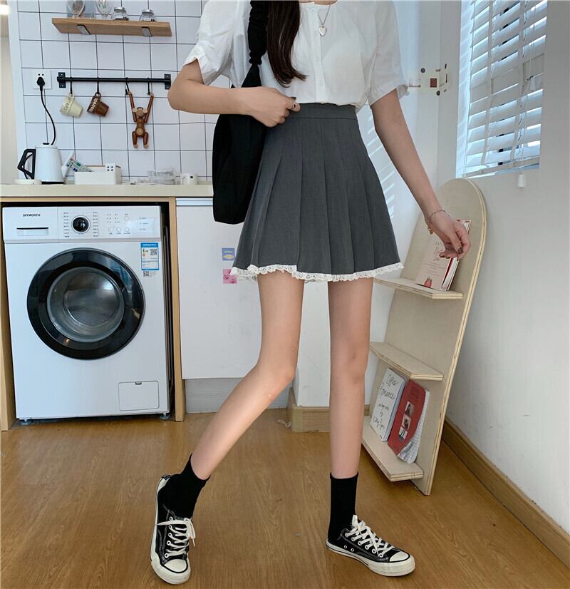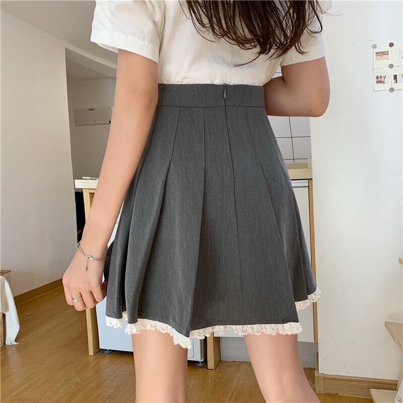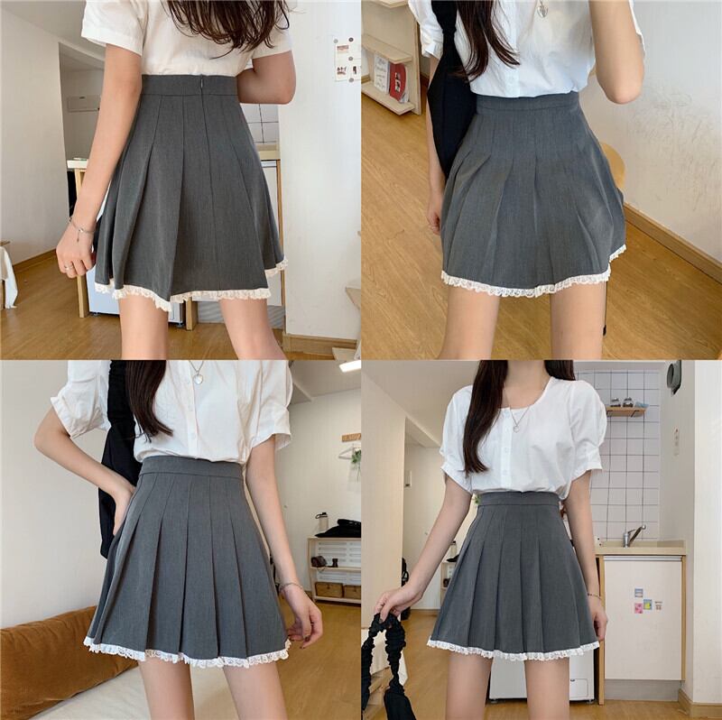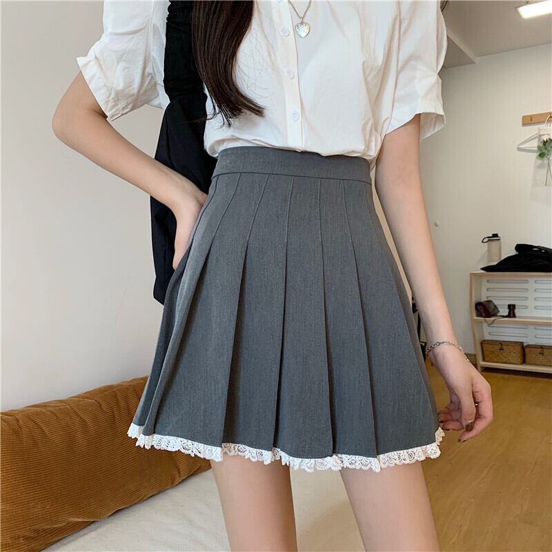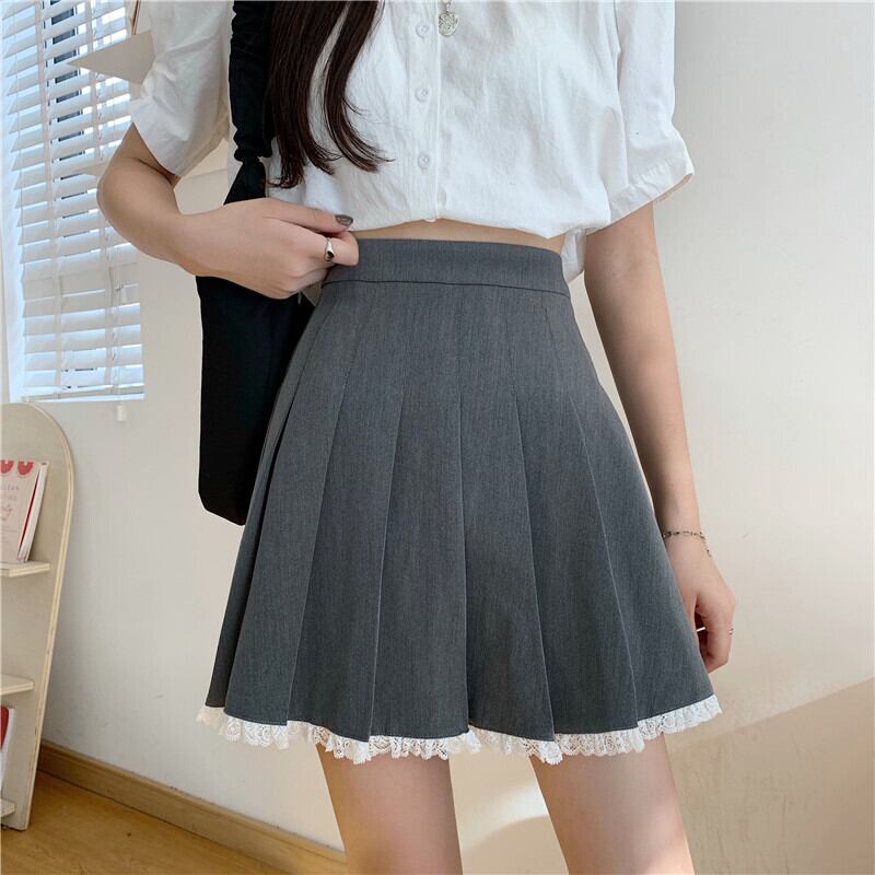 Aラインスカート レディーススプリング秋物ハイウェストウェストレースプリーツショート 春物 オータム ステッチ ウエスト ワンナンバー71739502208