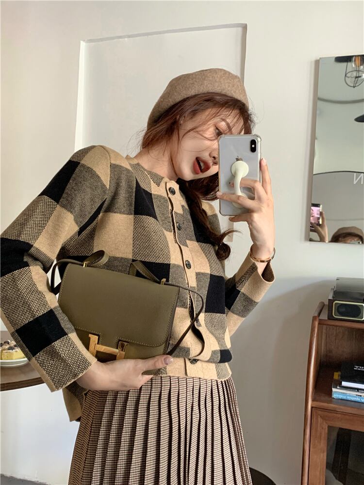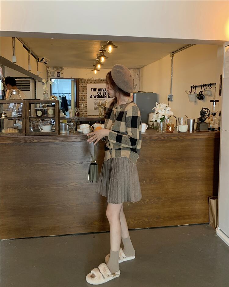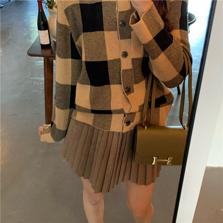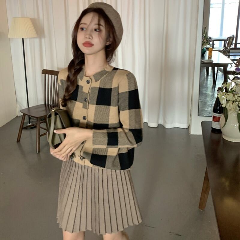 秋物ウィンターニットカーディガンハイウェストプリーツスカート オータム 冬物 ウエスト YY37856985469