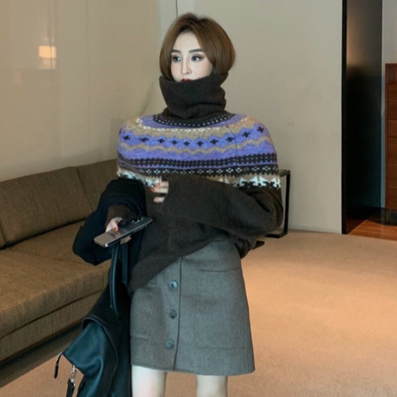 秋物ウィンタールーズニットセーター ハイウェストウェストポケットショートスカート レディーストレンド オータム 冬物 ウエスト YY5277044351