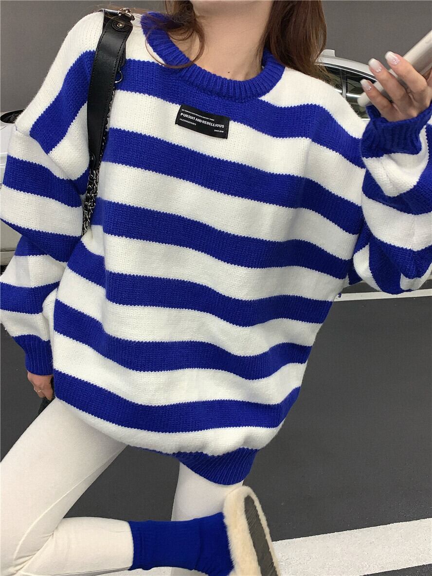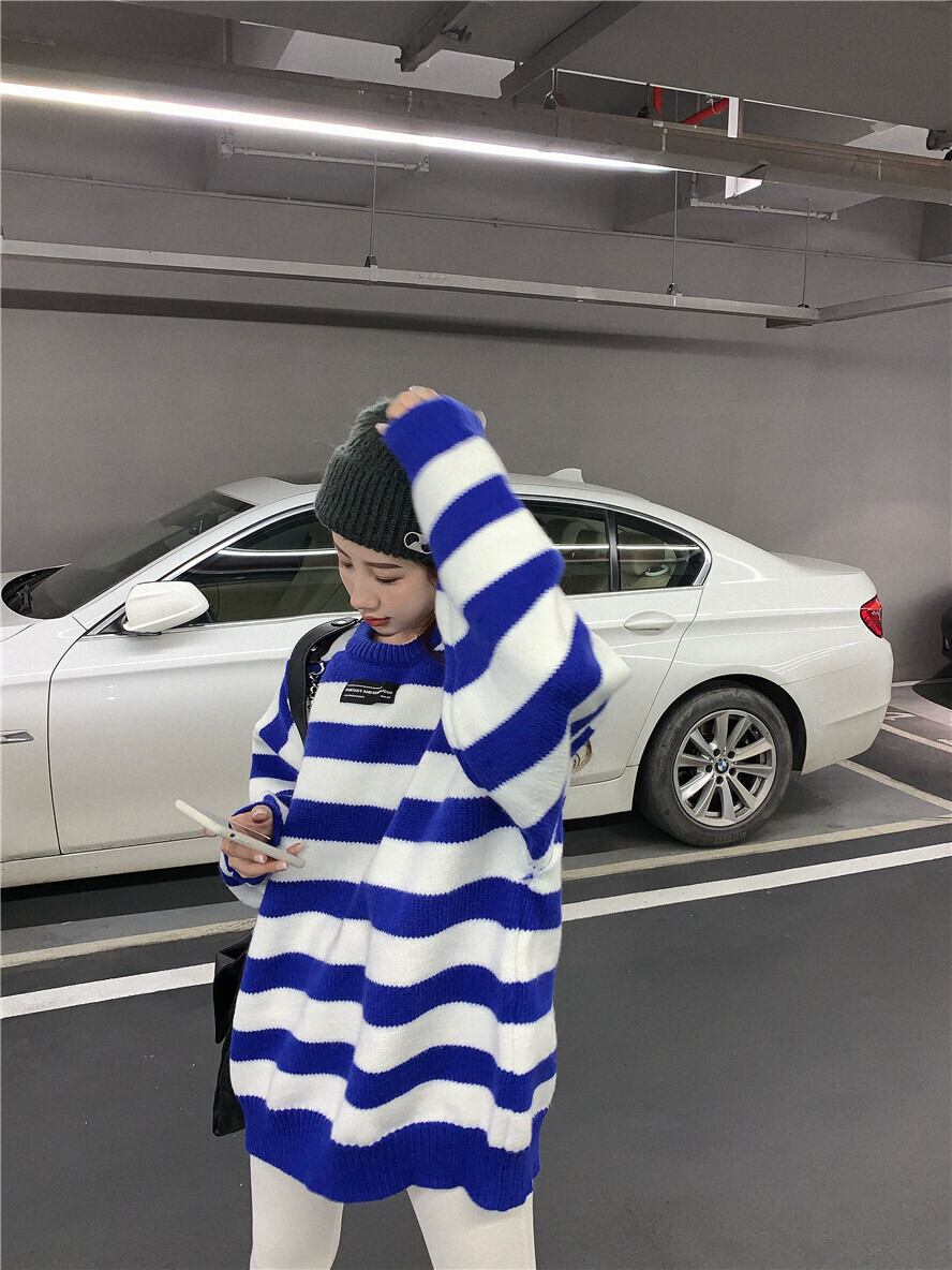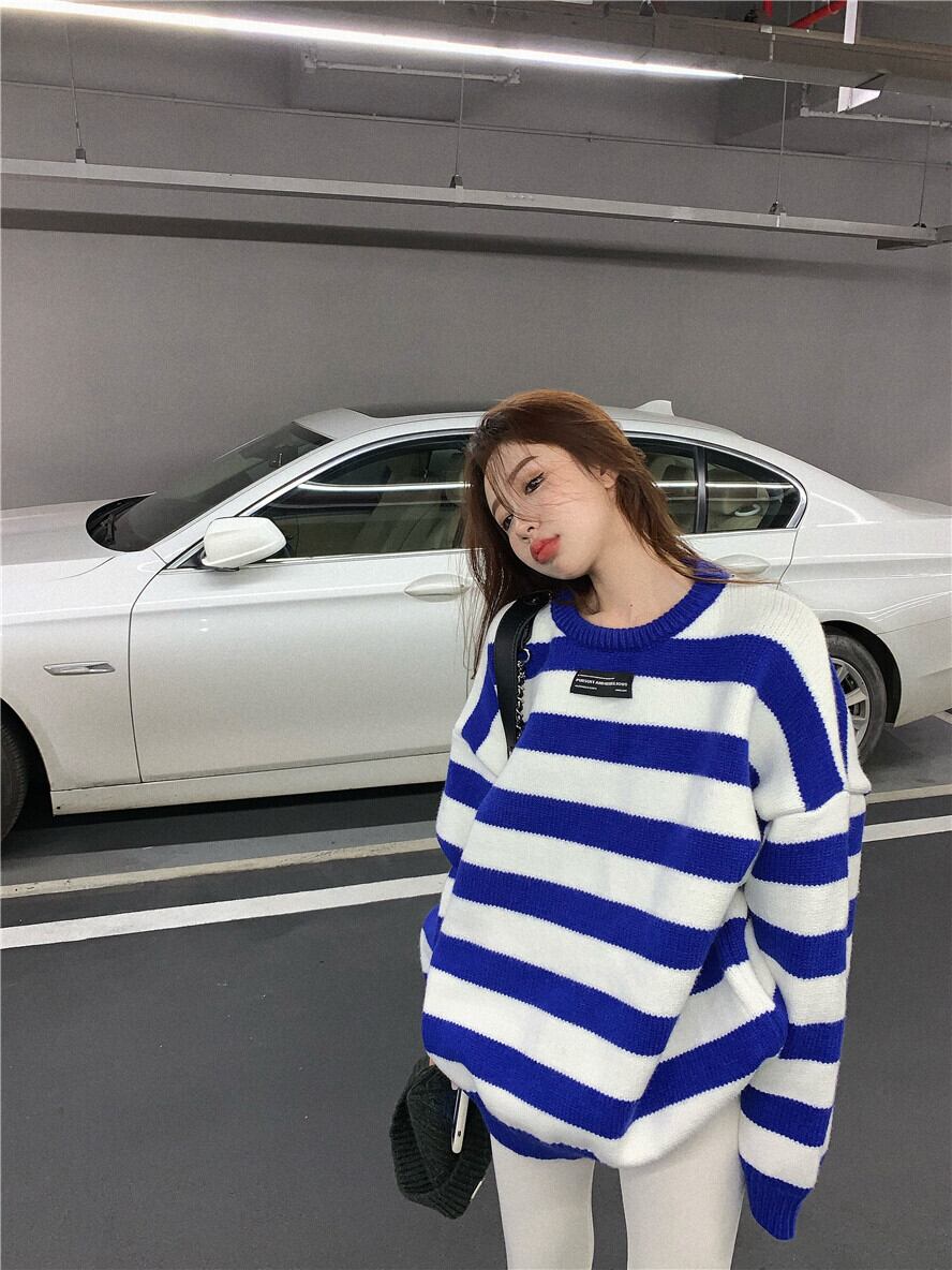 セーター レディースウィンター韓国ファッションストライプルーズ薄手ニットトップス トレンド 冬物 YY21693637140