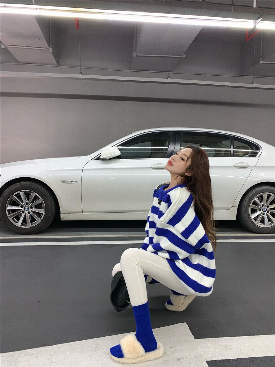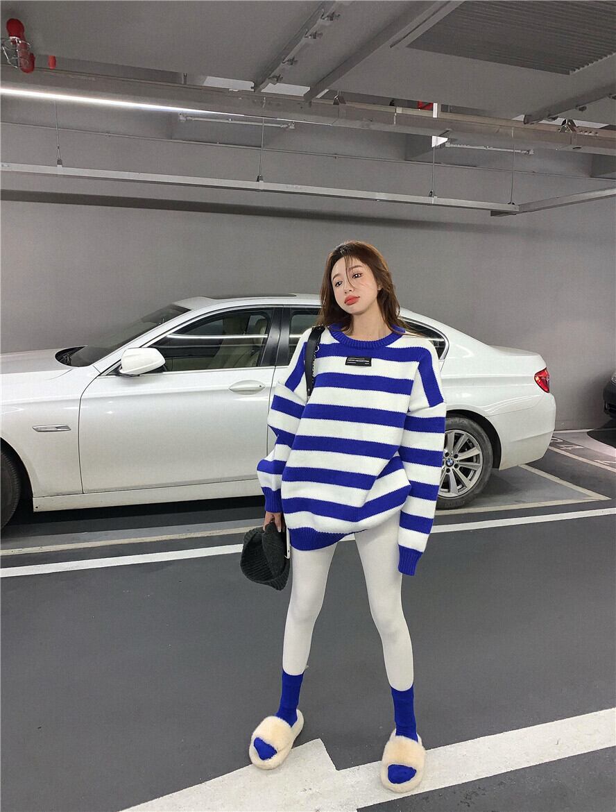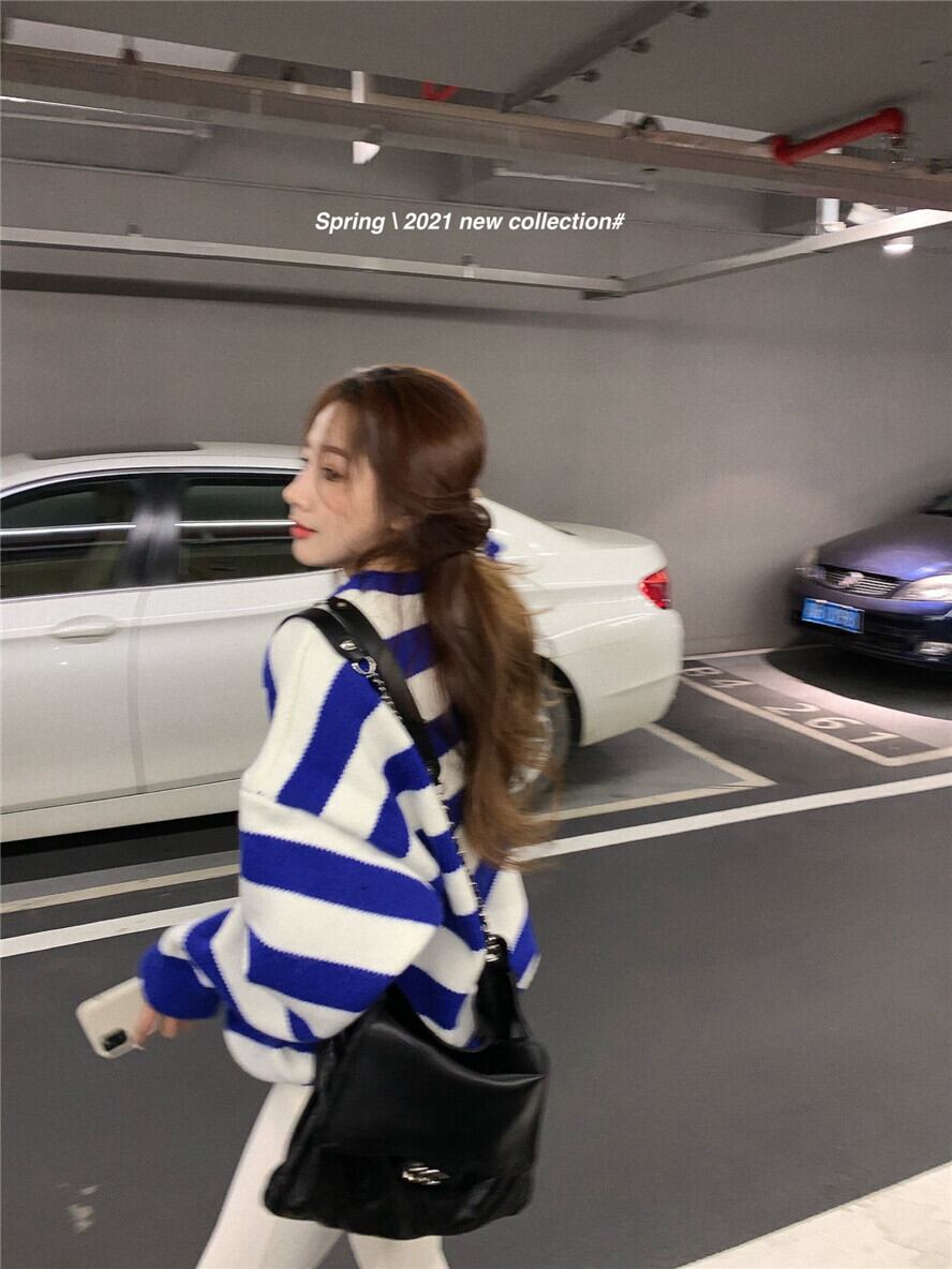 セーター レディースウィンター韓国ファッションストライプルーズ薄手ニットトップス トレンド 冬物 YY21693637140