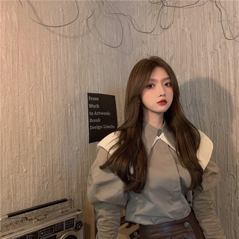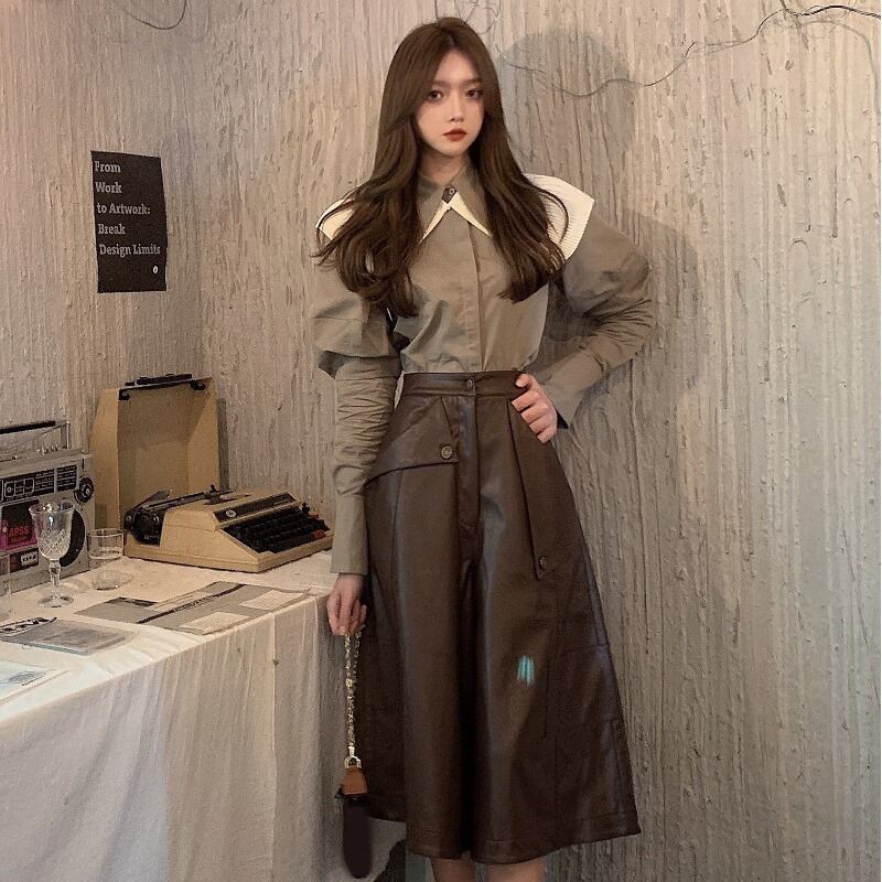 秋物ウィンタースタンダードスリーブ長袖シャツ ハイウェストウェストスリムスカート ロング レトロ オータム 冬物 ウエスト YY99429925686