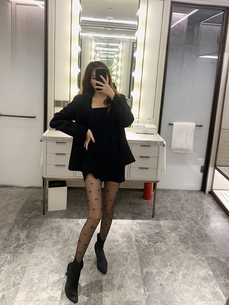 秋物ウィンターブラックレースストッキング トレンド薄手リボンソックス オータム 冬物 タイツ YY43705974249