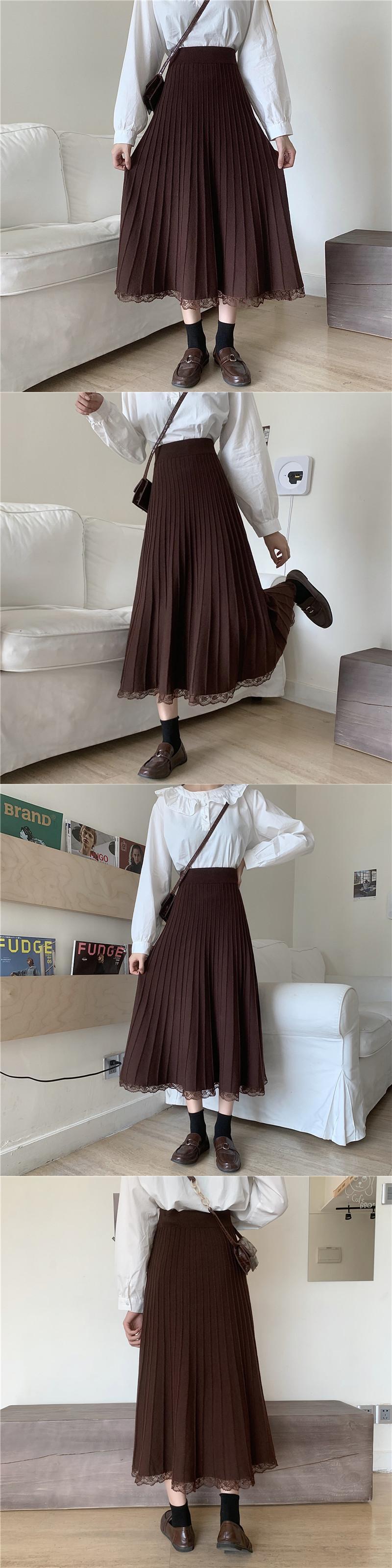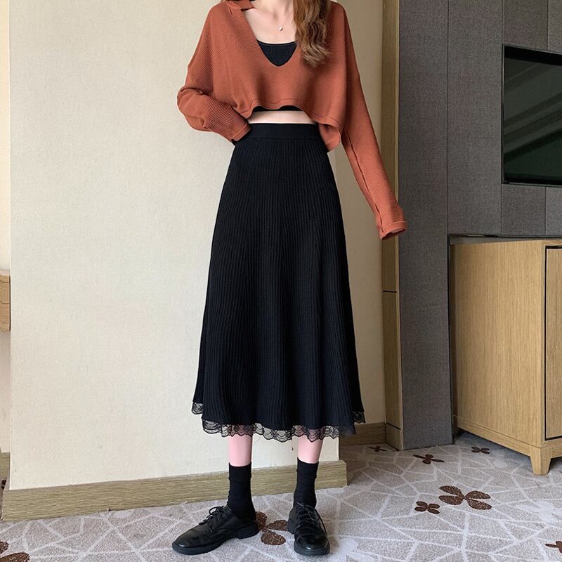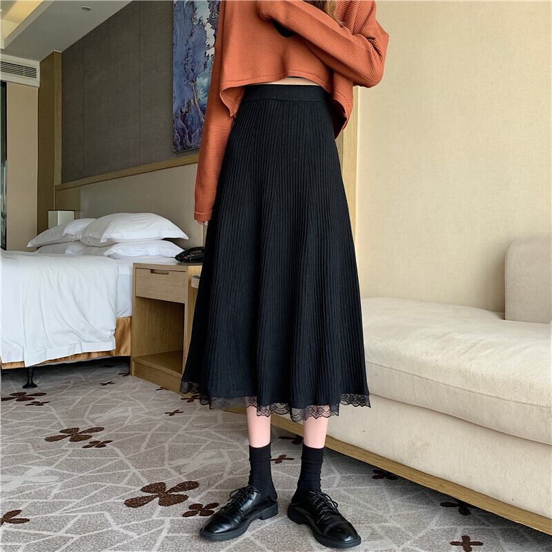 ニットスカート スプリングハイウェストレースレディースAライン 春物 ウエスト ミドル丈 SYJ60740096967