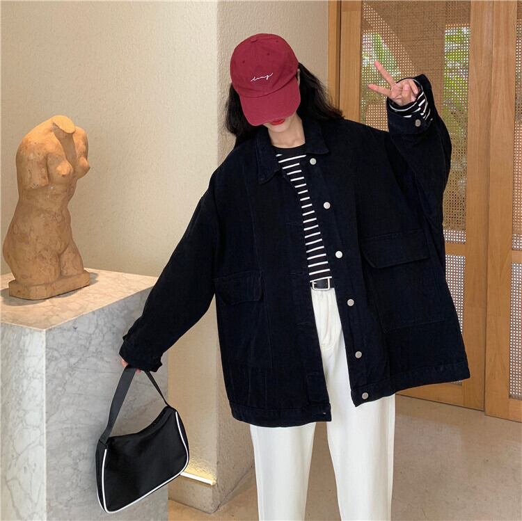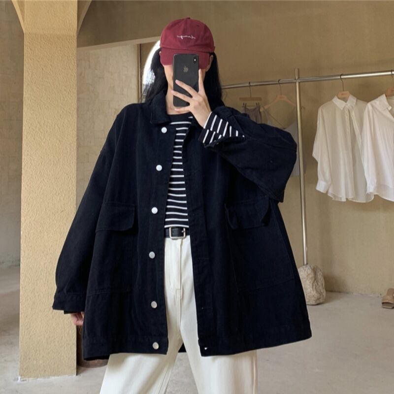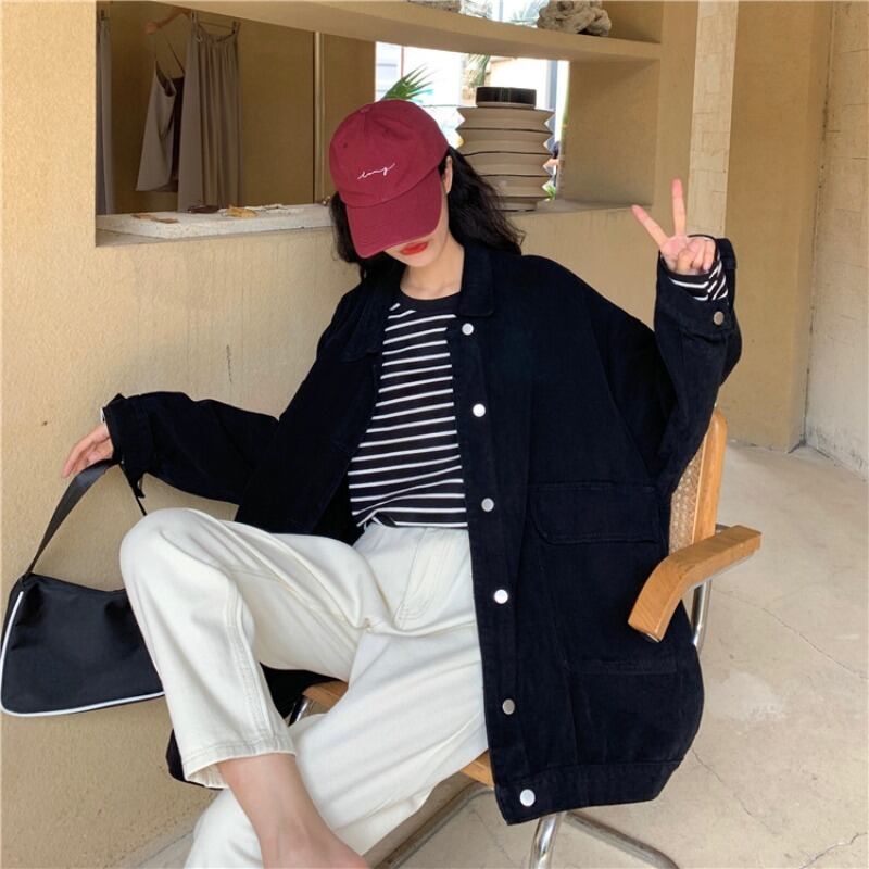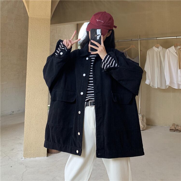 ジャケット レディース韓国ファッションルーズブラックカーディガントップス ロング ボーイズ スタイル 長袖 YY31270803092