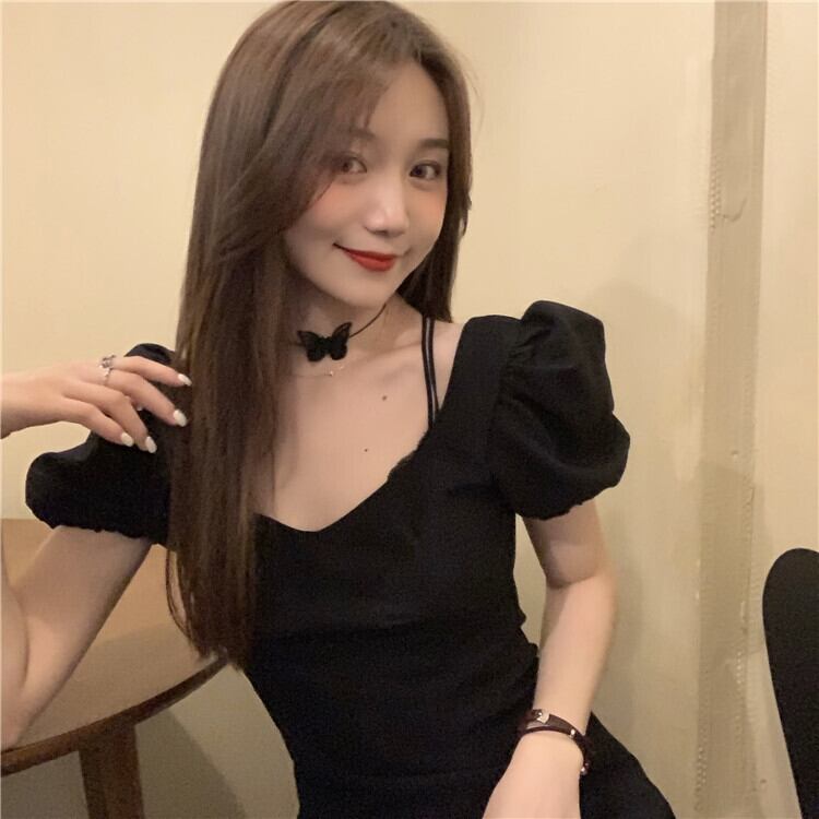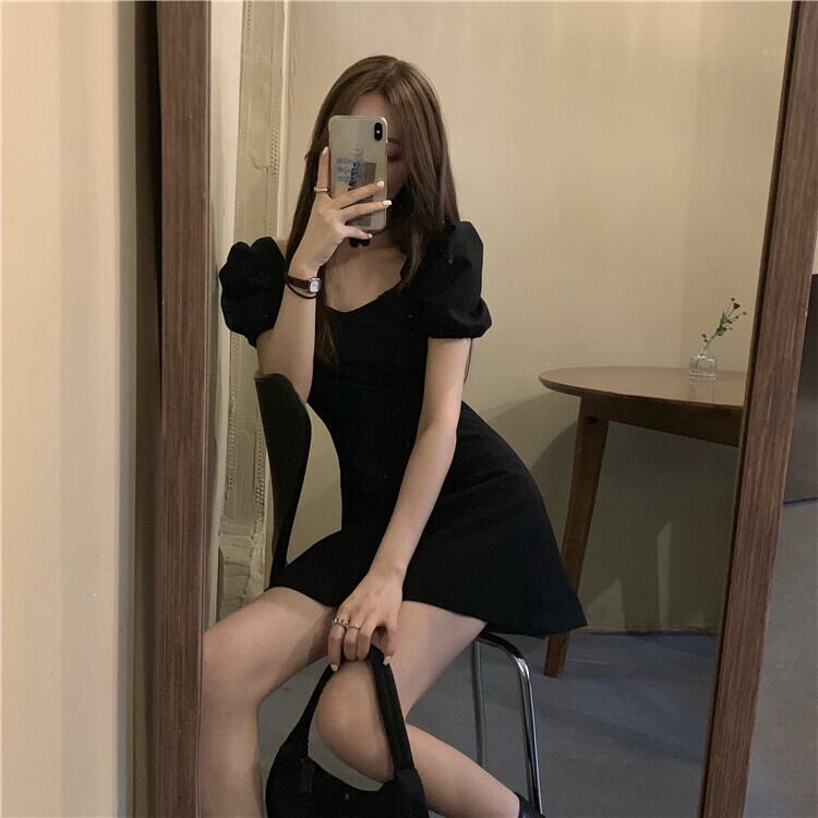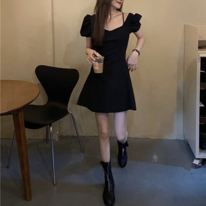 スタンダードワンピースウェストブラックスプリングハイウェストショートスカート レトロ 春物 ウエスト MONROE91800359049