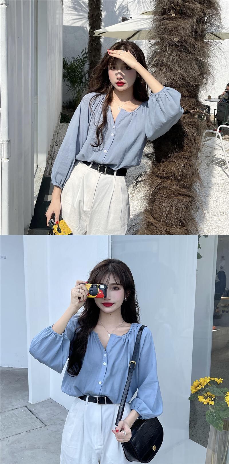 ブラウス スプリングブルーシャツ レディーススタイル ロング 春物 長袖 SPM6484175379