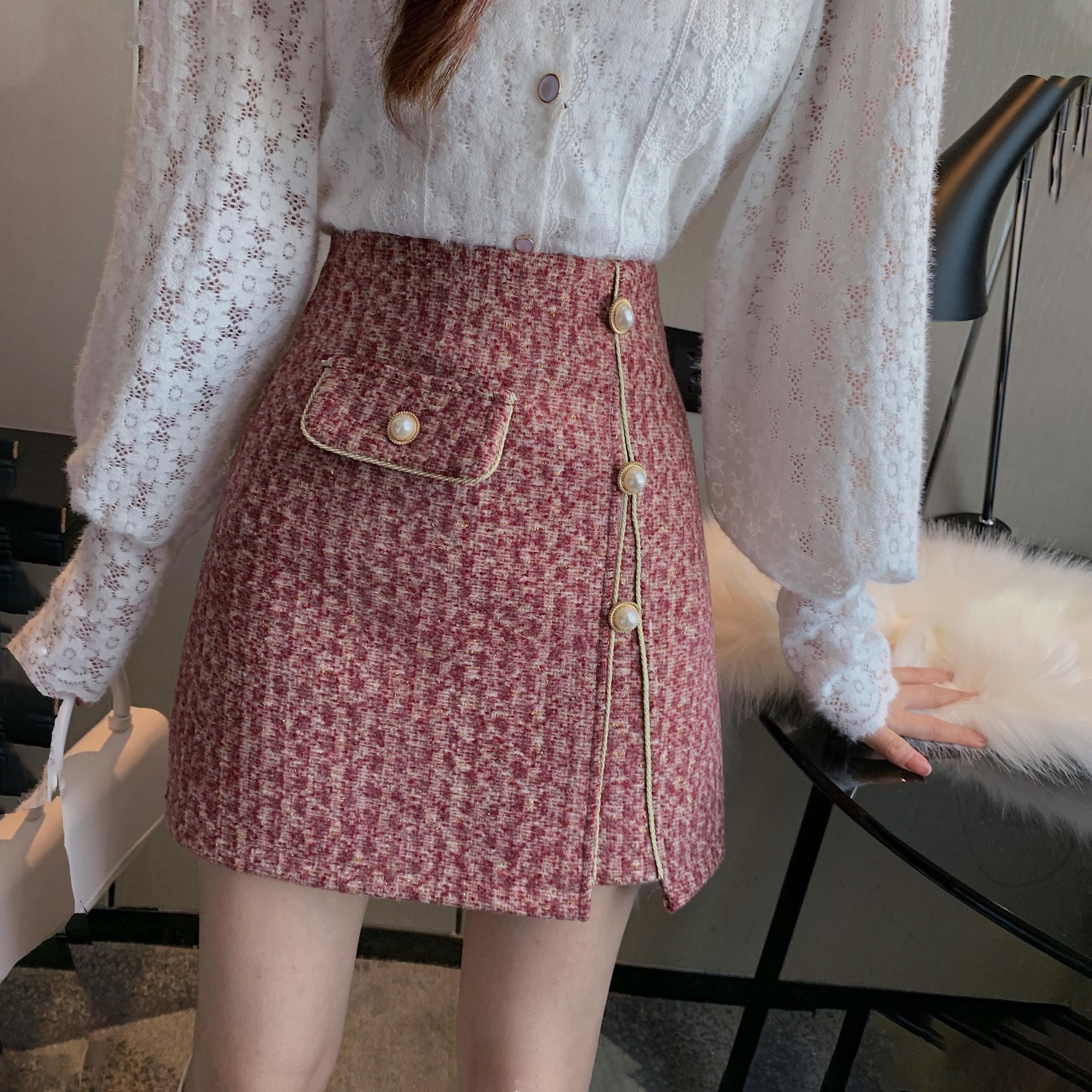 色:年レッドショートスカート,オールマッチのブラックスカート