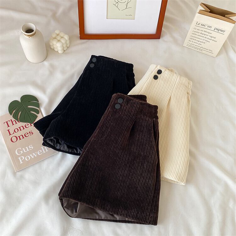 コーデュロイショーツ 韓国ファッションハイウェストカジュアルブーツパンツ 靴 シューズ ウィンター 冬物 スタイル ウエスト YY36378814308