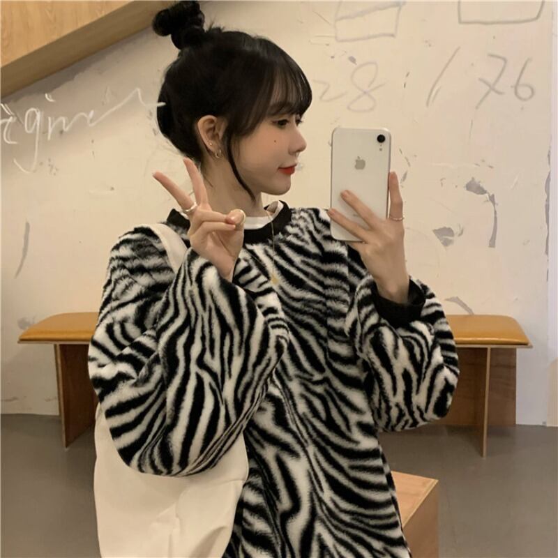 トレンドパターンラウンドネックセーター ジャケット レディース韓国ファッション秋物ウィンタールーズプルオーバー ロング オータム 冬物 Oネック 長袖 YY6812173327