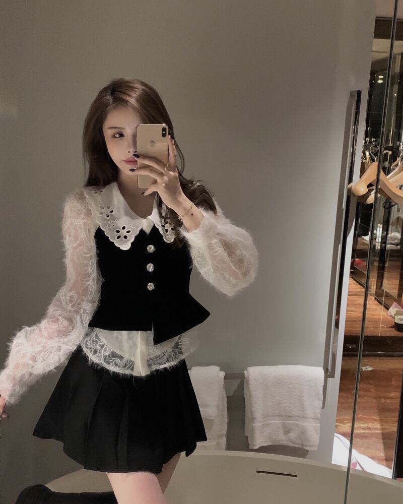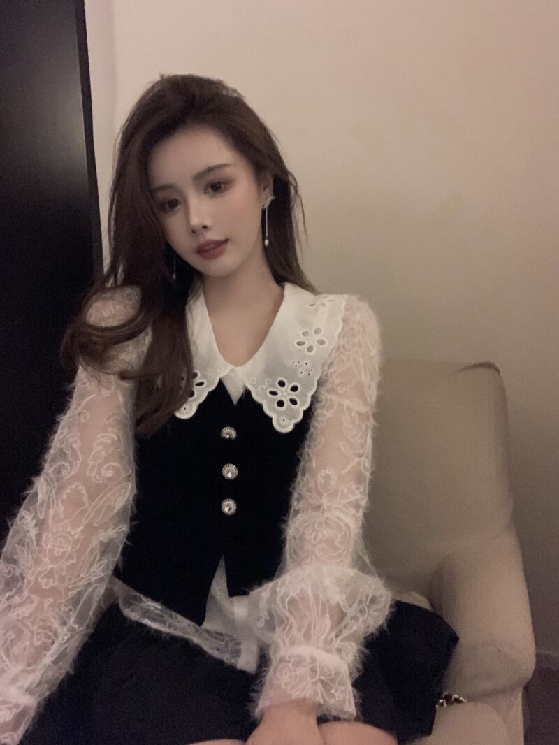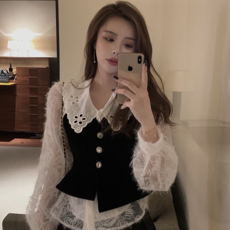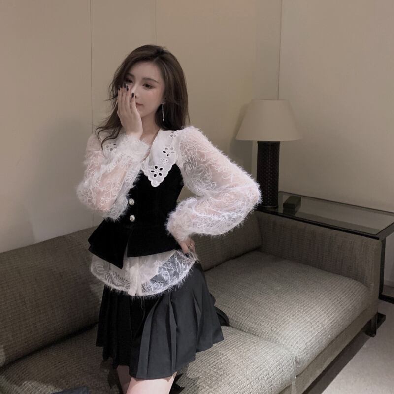 色:レースシャツ,ベルベットキャミソール